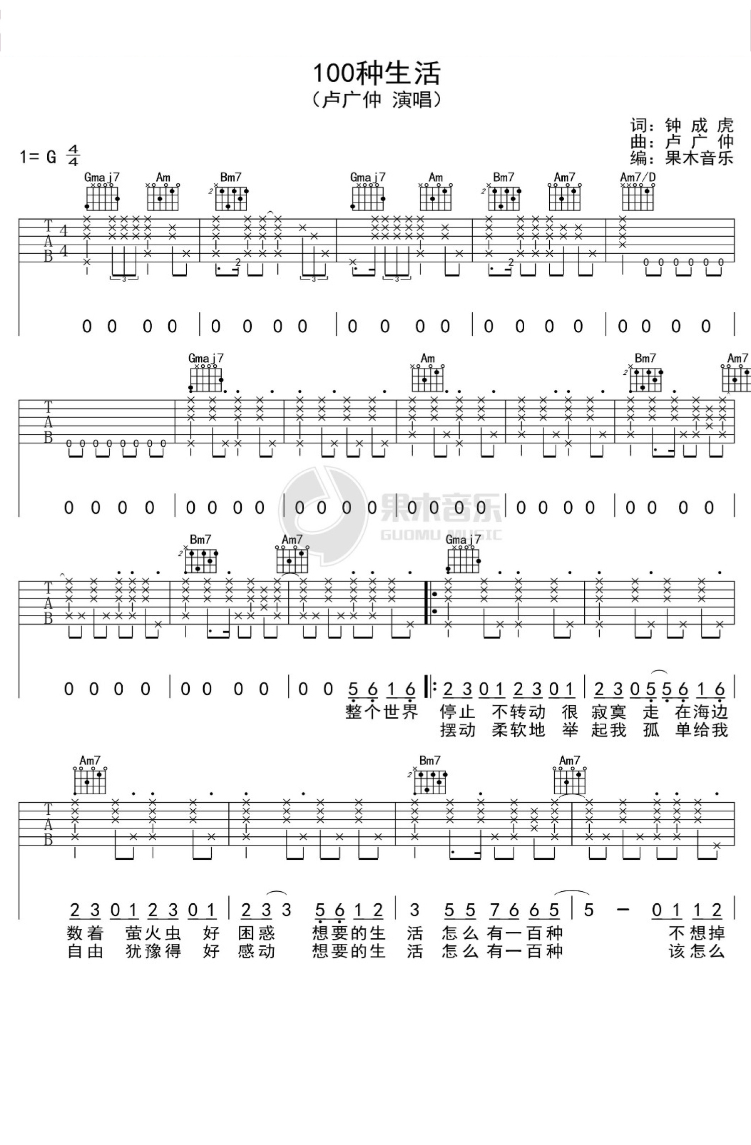 100种生活吉他谱 - 卢广仲 - G调吉他弹唱谱