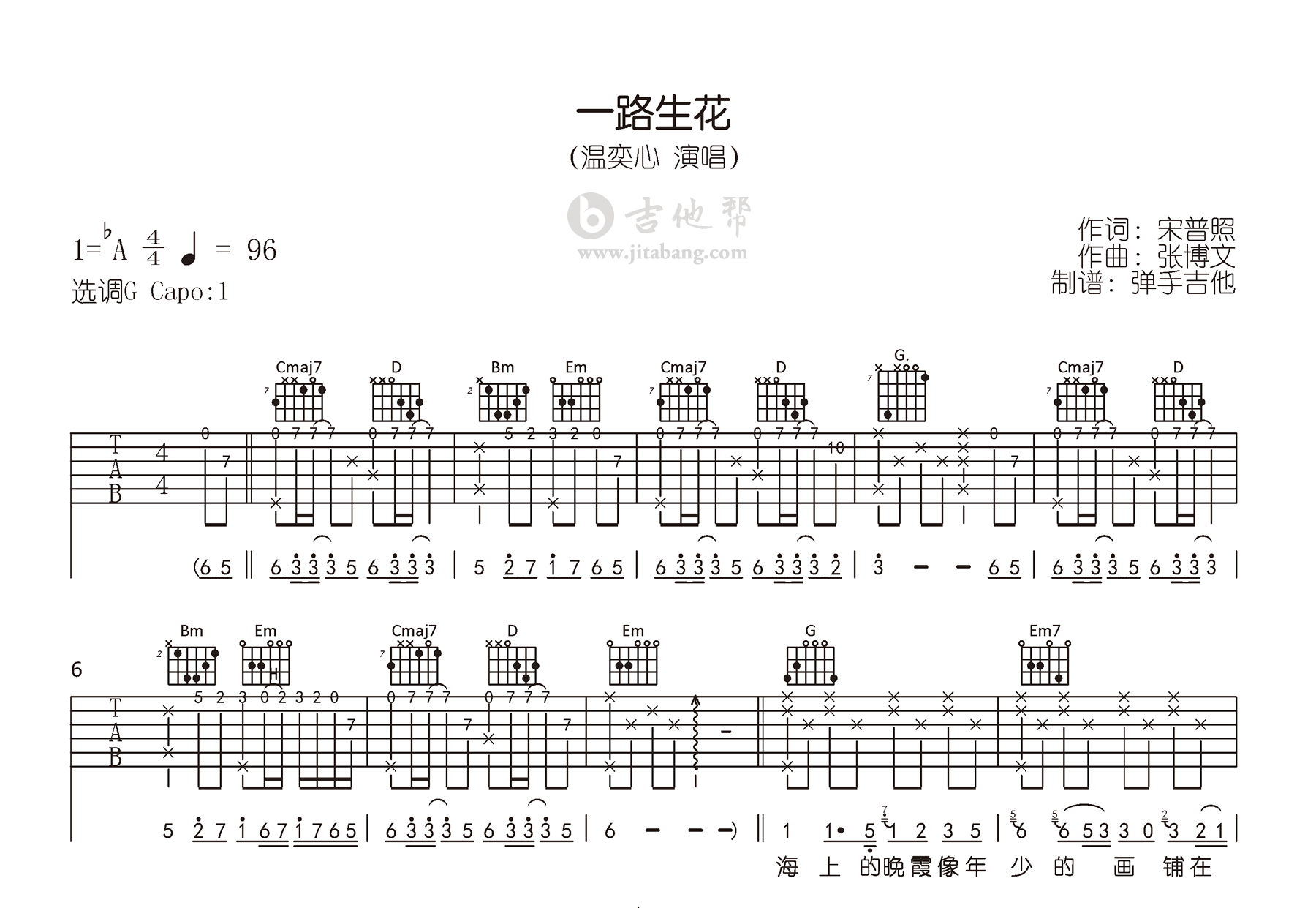 当前位置:琴谱网>吉他弹唱>一路生花