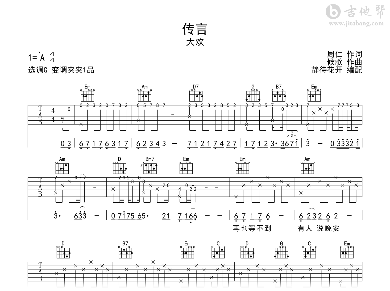 传言吉他谱 - 大欢 - G调吉他弹唱谱