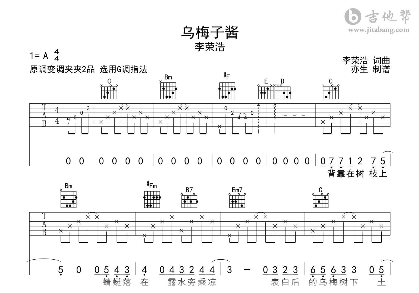 乌梅子酱吉他谱 - 李荣浩 - G调吉他弹唱谱