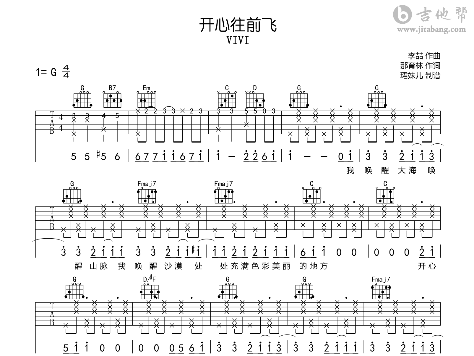 开心往前飞吉他谱 - VIVI - G调吉他弹唱谱