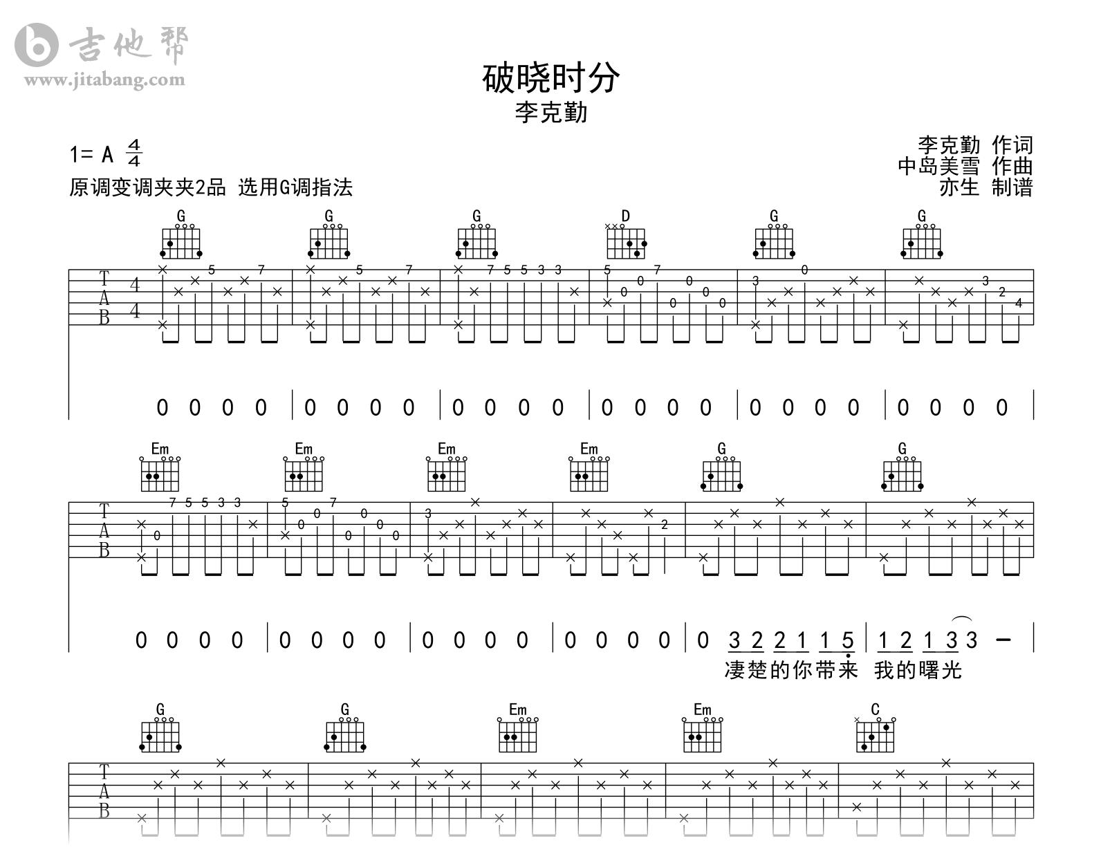 破晓时分吉他谱 - 李克勤 - G调吉他弹唱谱