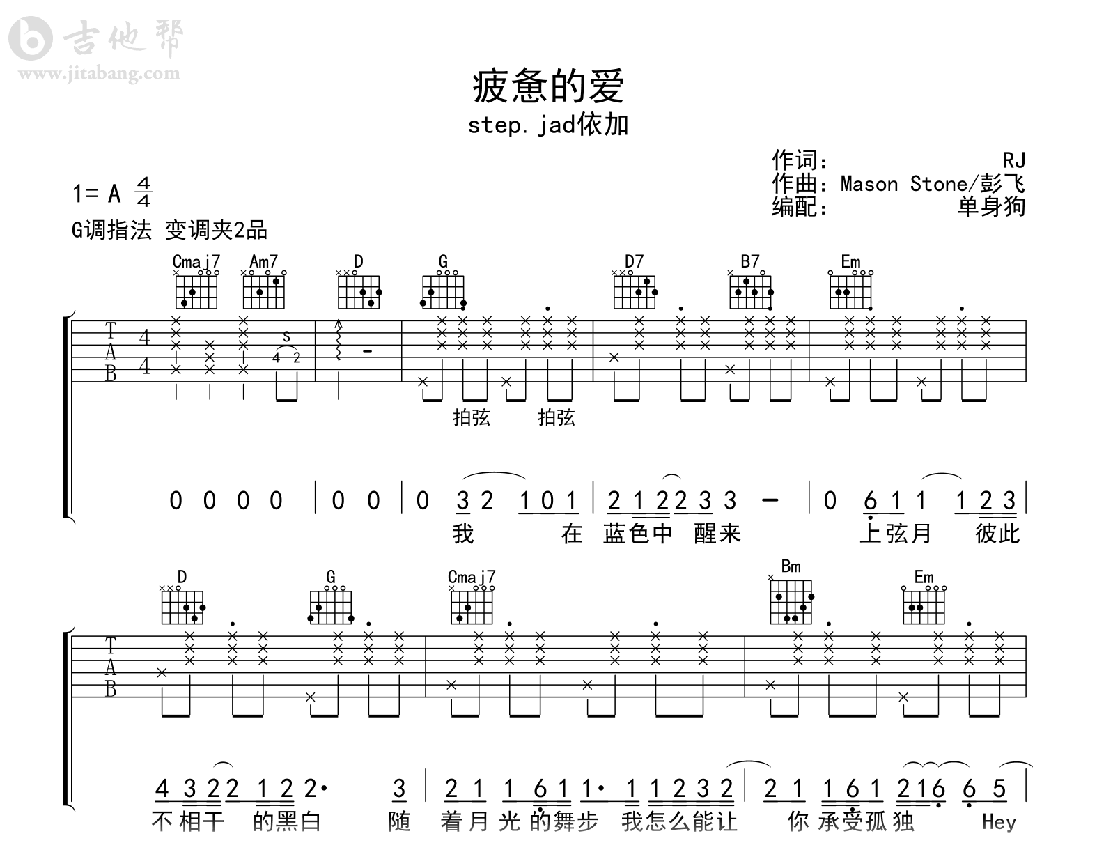疲惫的爱吉他谱 - step.jad依加 - G调吉他弹唱谱