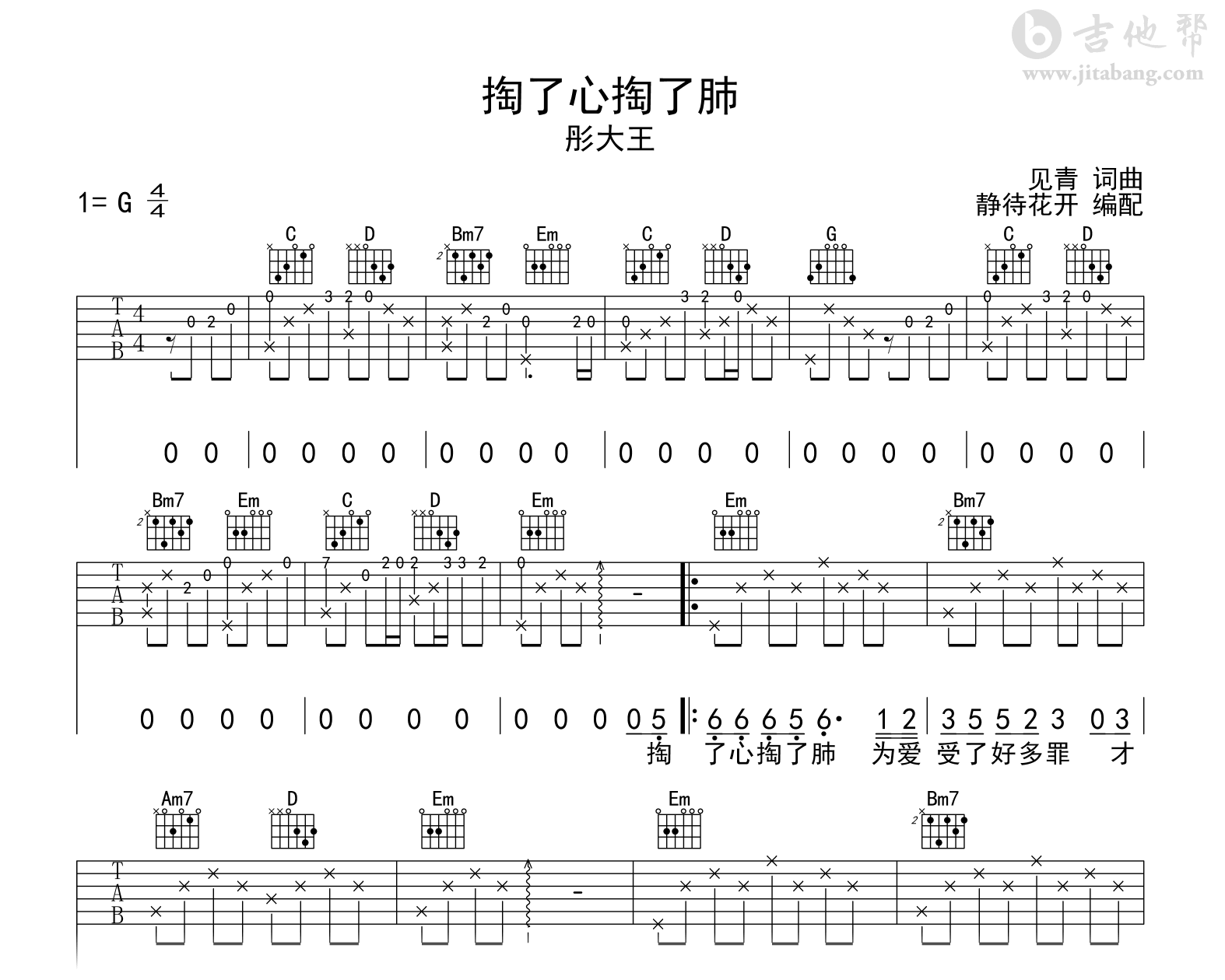 掏了心掏了肺吉他谱 - 彤大王 - G调吉他弹唱谱