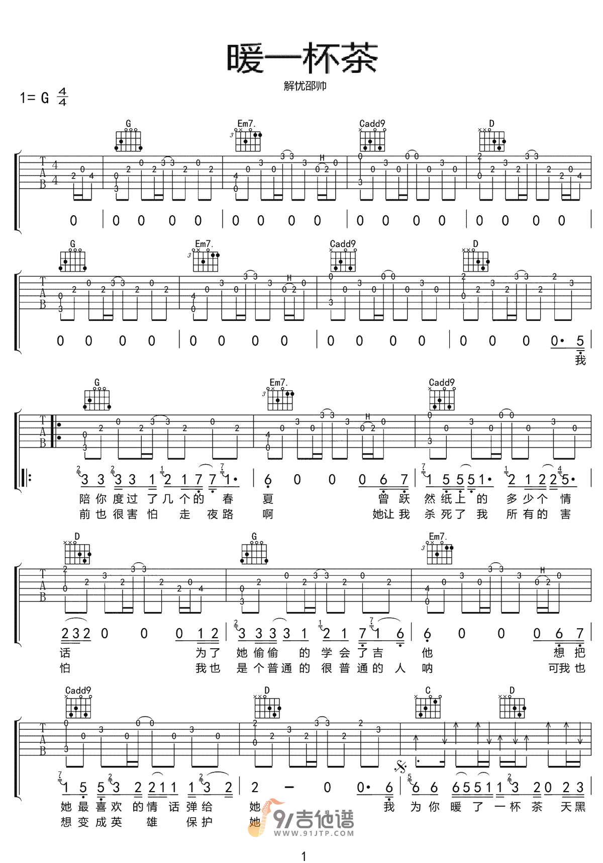 暖一杯茶吉他谱 - 解忧邵帅 - G调吉他弹唱谱 - 原版