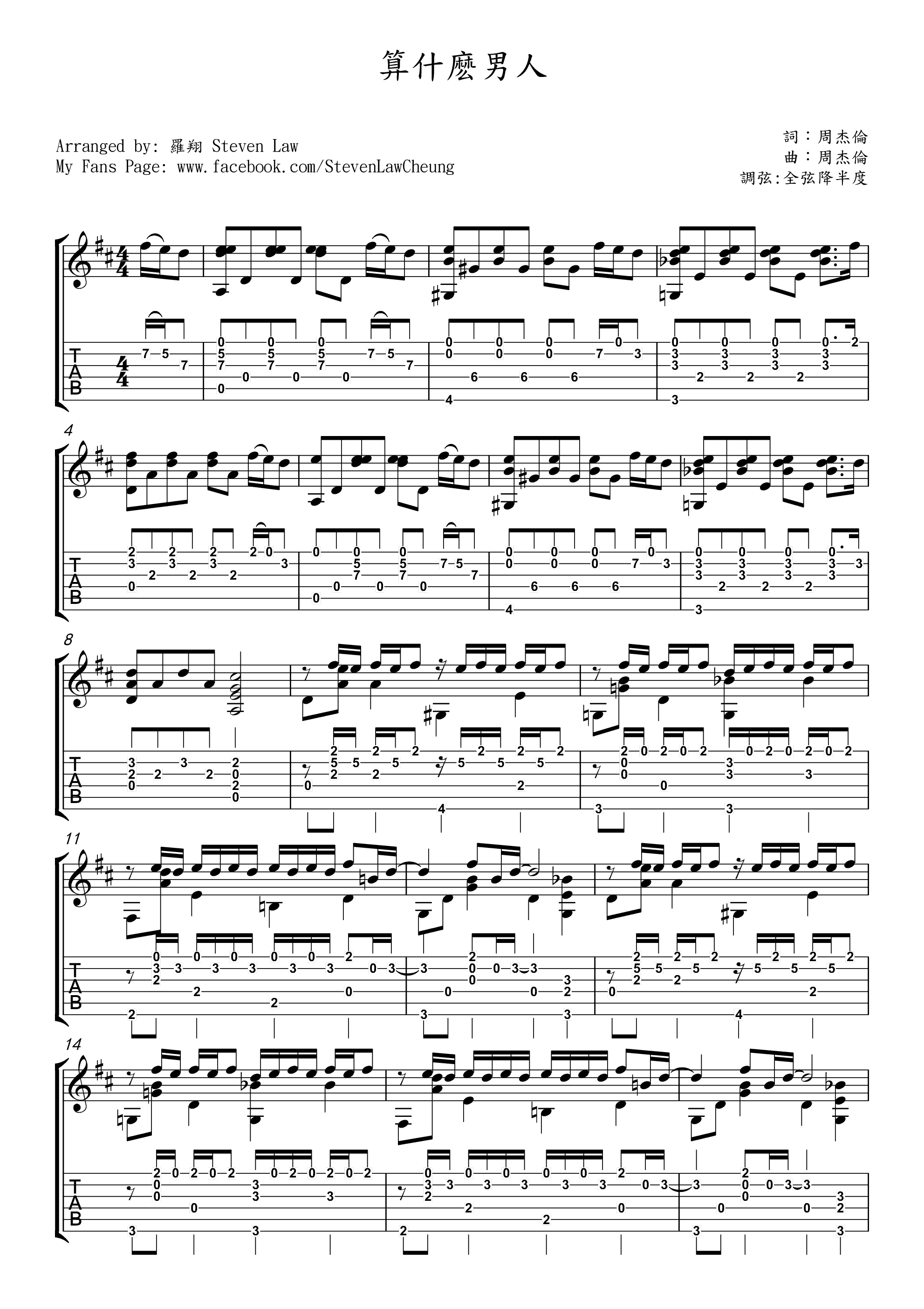 算什么男人吉他谱 - 周杰伦 - 吉他独奏谱