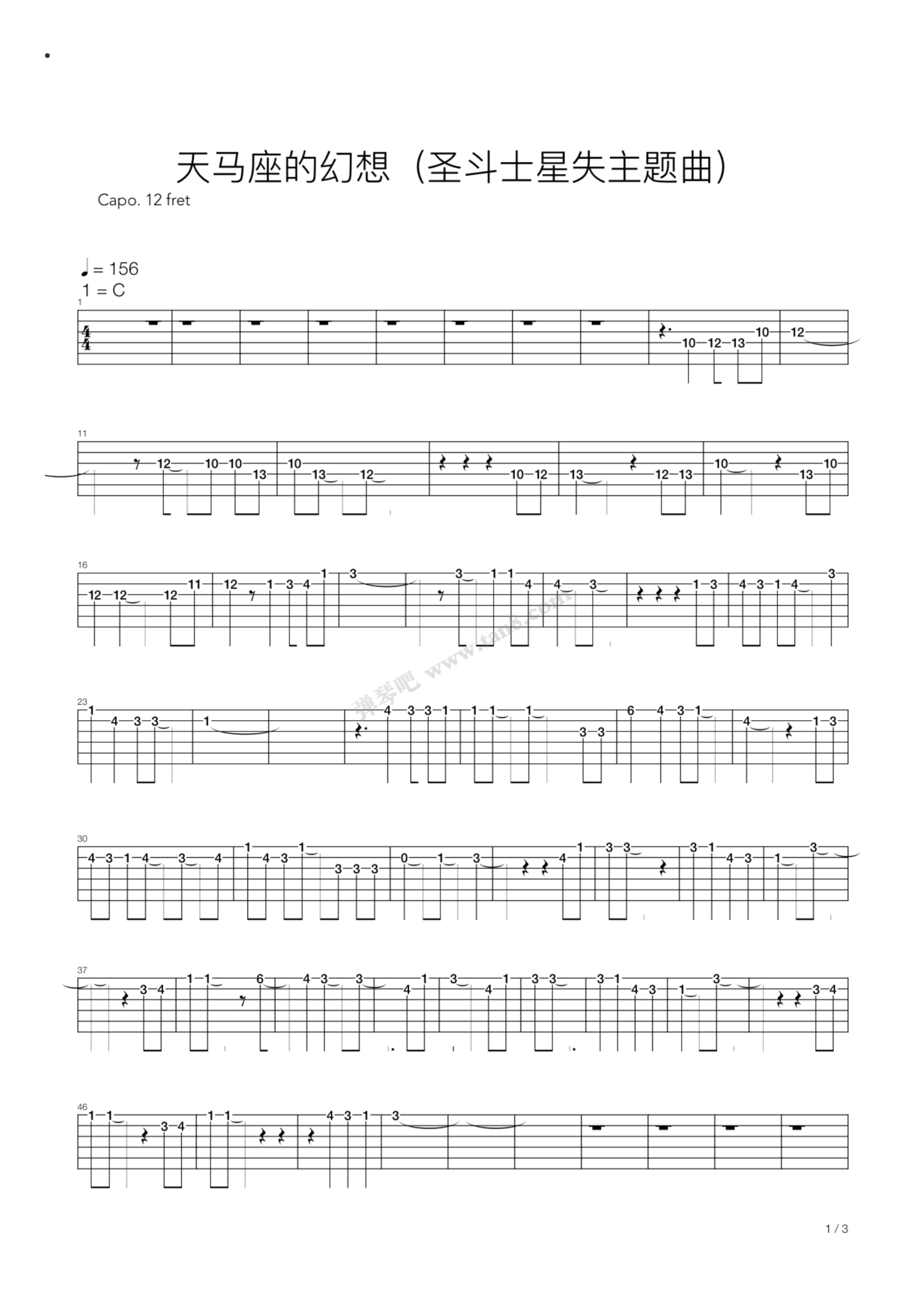 曲谱介绍: 《圣斗士星失-天马座的幻想》,舒鑫(六线谱电吉他谱)