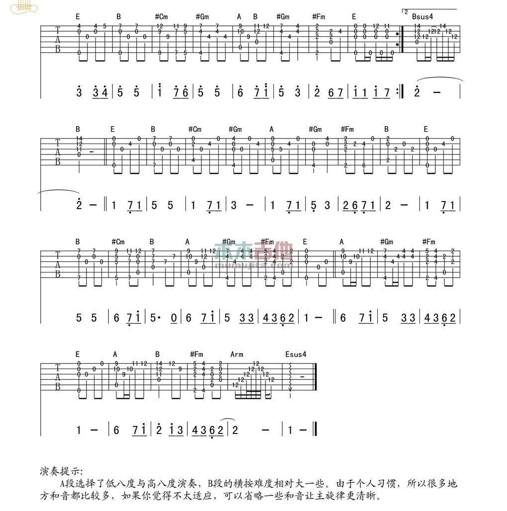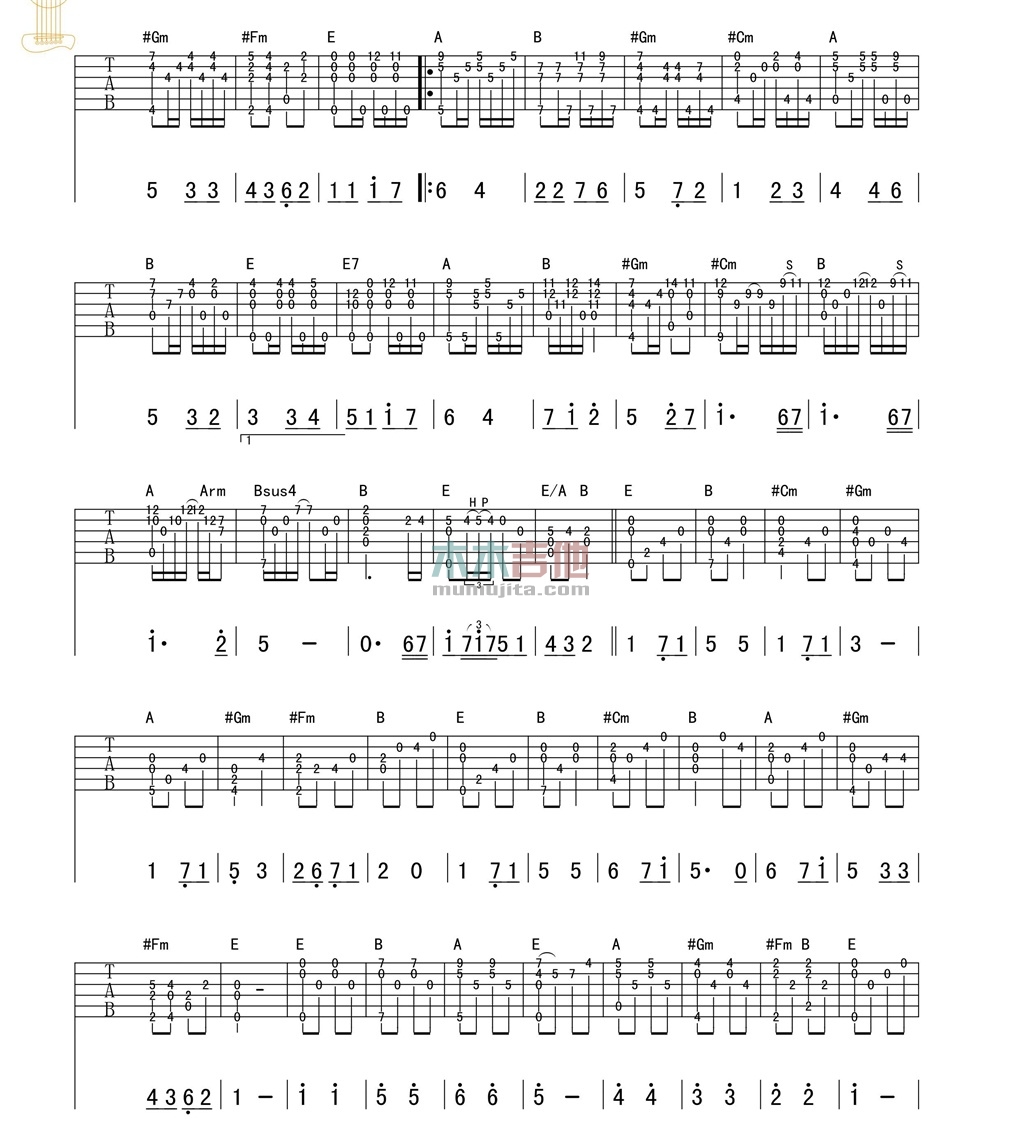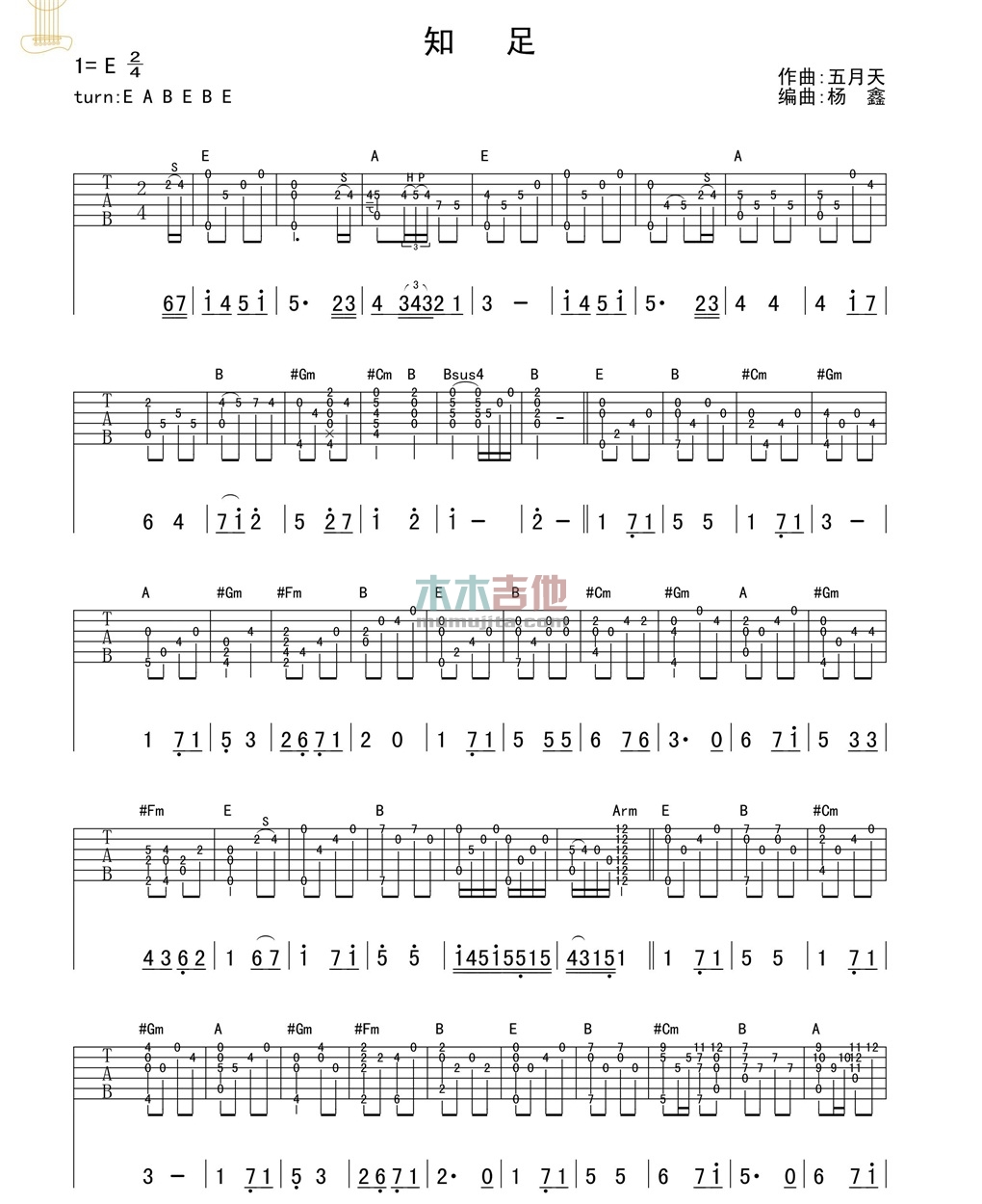 曲谱介绍: 五月天《知足》吉他独奏谱,共有3张高清图谱。