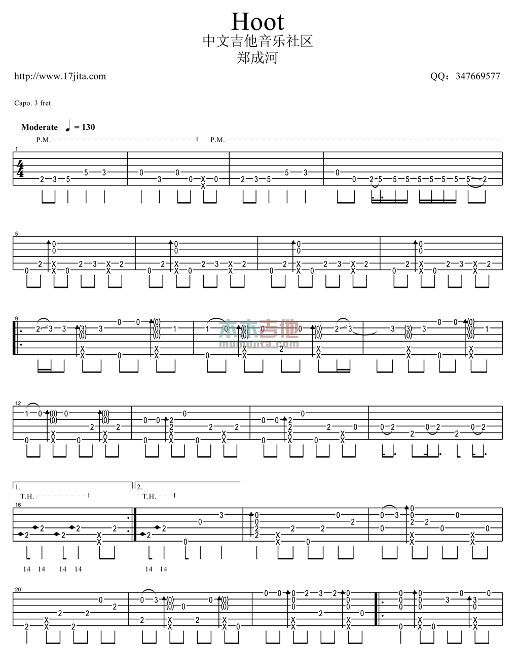曲谱介绍: 郑成河《Hoot》吉他独奏谱,共有3张高清图谱。