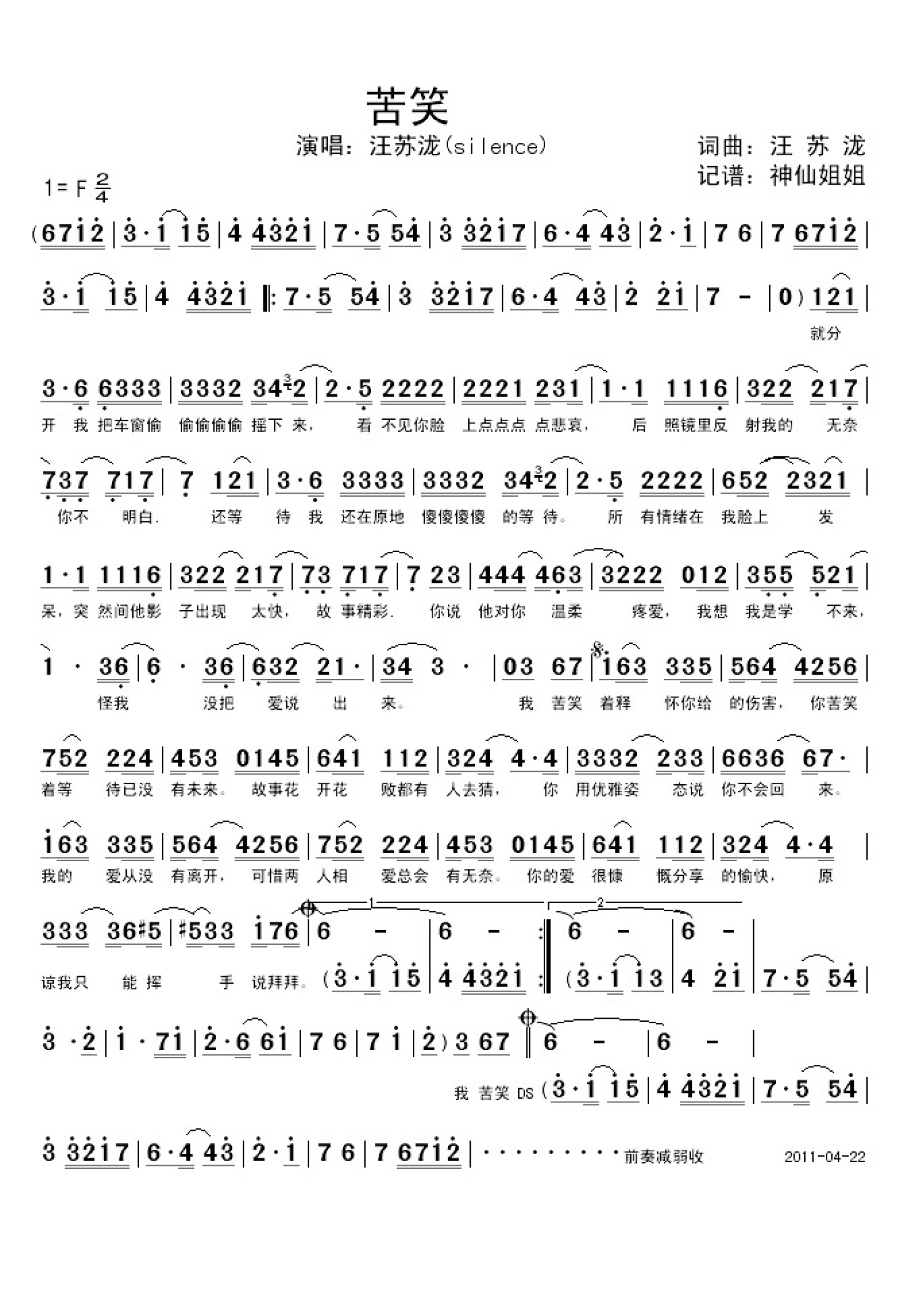 苦笑 - 汪苏泷 (Silence Wan)
