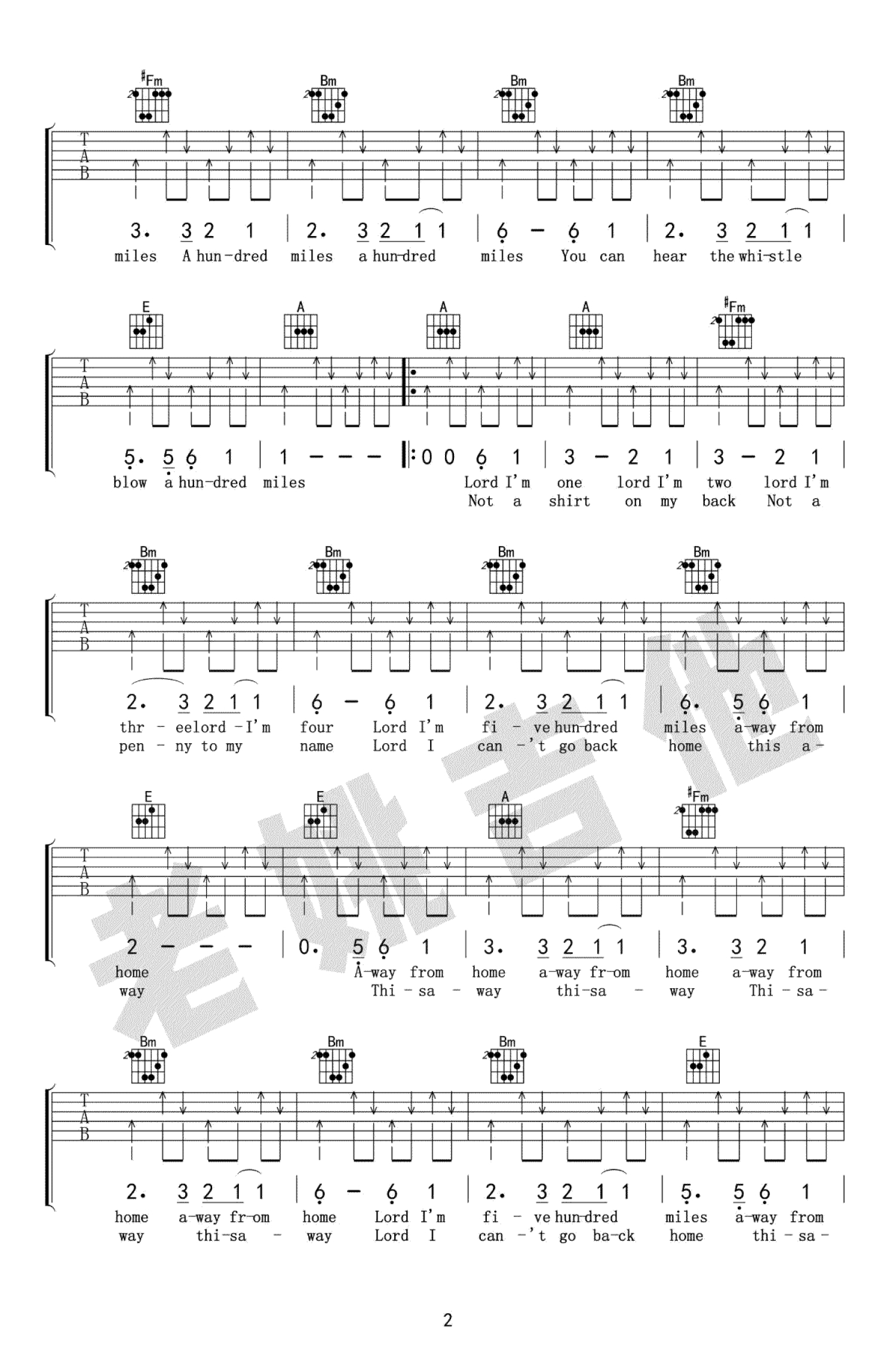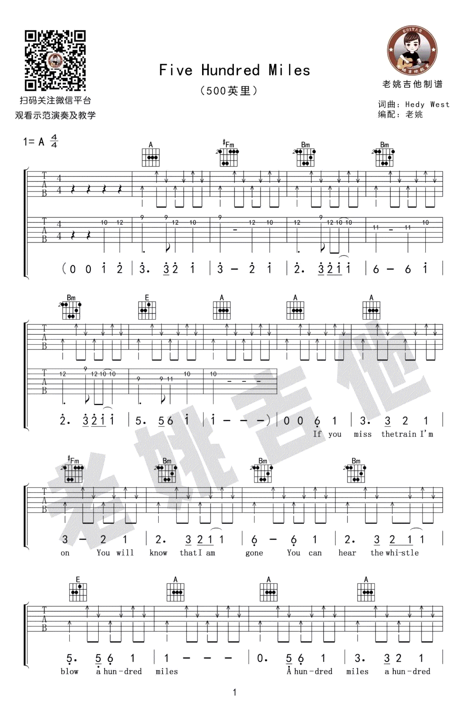 曲谱介绍: 醉乡民谣主题曲,《FiveHundredMiles》吉他谱,一首经典英文歌曲,也是非常简单的吉他弹唱歌曲,整首歌只用到三个和弦,5离家500里,百听不厌的旋律,唱出依依不舍的离愁别绪。离乡背井的游子,内心柔软的深处,永远有一块地方,是属于故乡的。