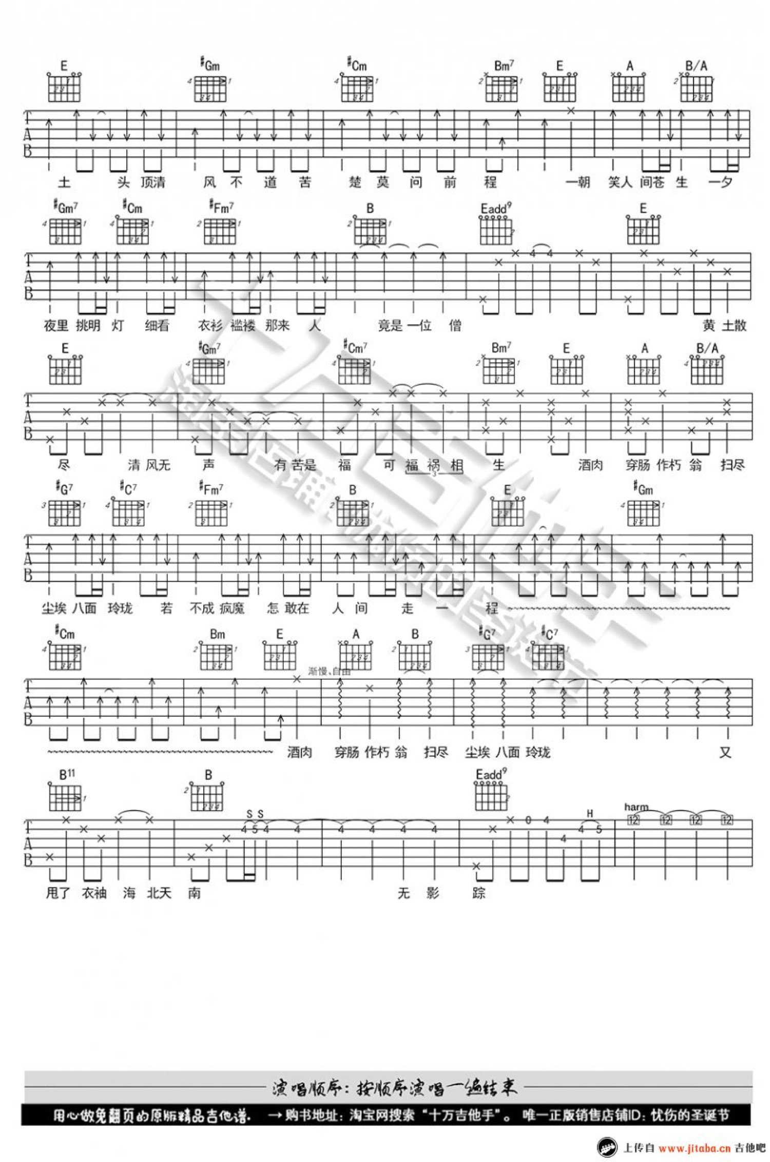 酒僧吉他谱 - 李雨 - E调吉他弹唱谱