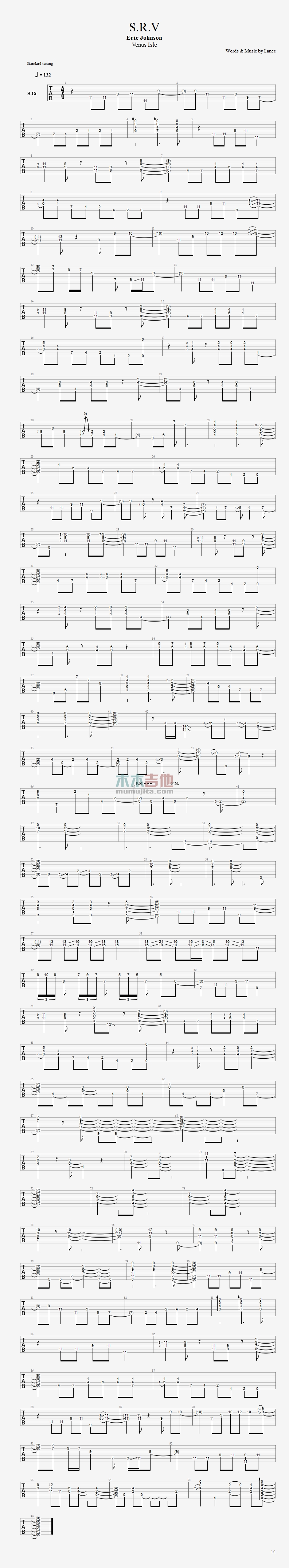 曲谱介绍: Eric,Johnson《S.R.V.》吉他独奏谱,共有1张高清图谱,免翻页排版设计。