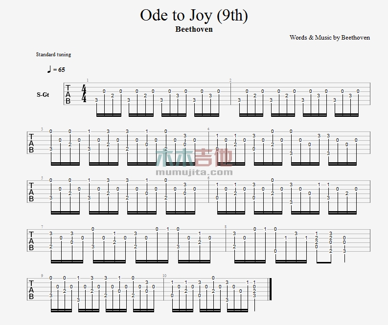 Ode to Joy 欢乐颂吉他谱 - 名曲 - 吉他独奏谱