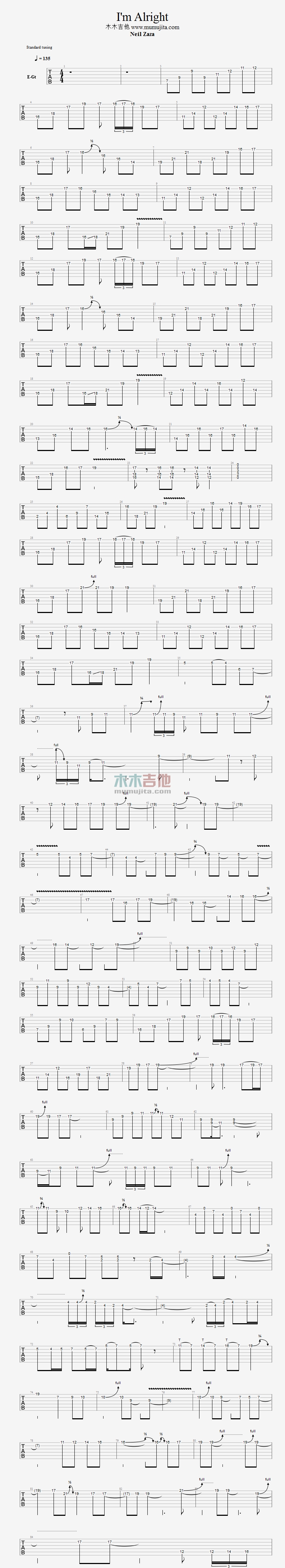 曲谱介绍: Neil,Zaza《ImAlright》吉他独奏谱,共有2张高清图谱,免翻页排版设计。
