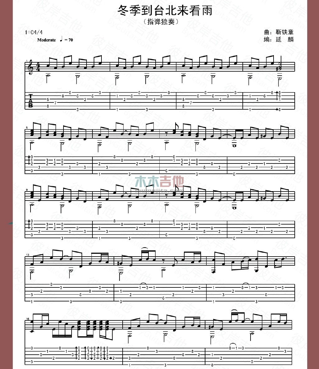 曲谱介绍: 孟庭苇《冬季到台北来看雨》吉他独奏谱,共有2张高清图谱,免翻页排版设计。