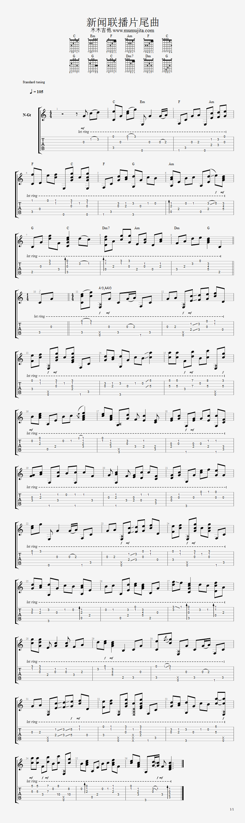 新闻联播片尾曲吉他谱 - 名曲 - 吉他独奏谱