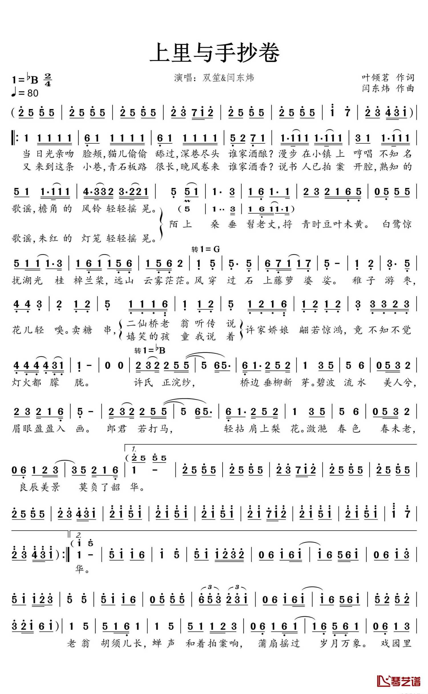 上里与手抄卷简谱 - 双笙