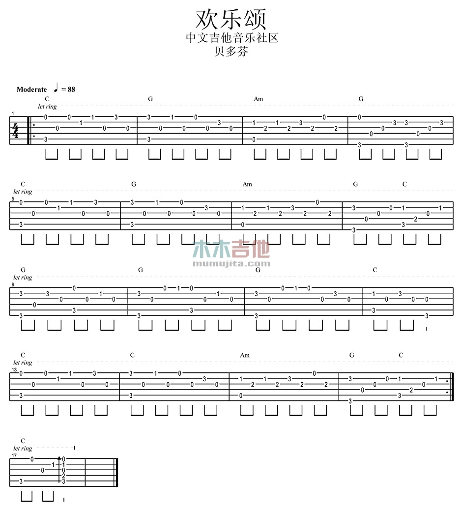 欢乐颂吉他谱 - 名曲 - 吉他独奏谱