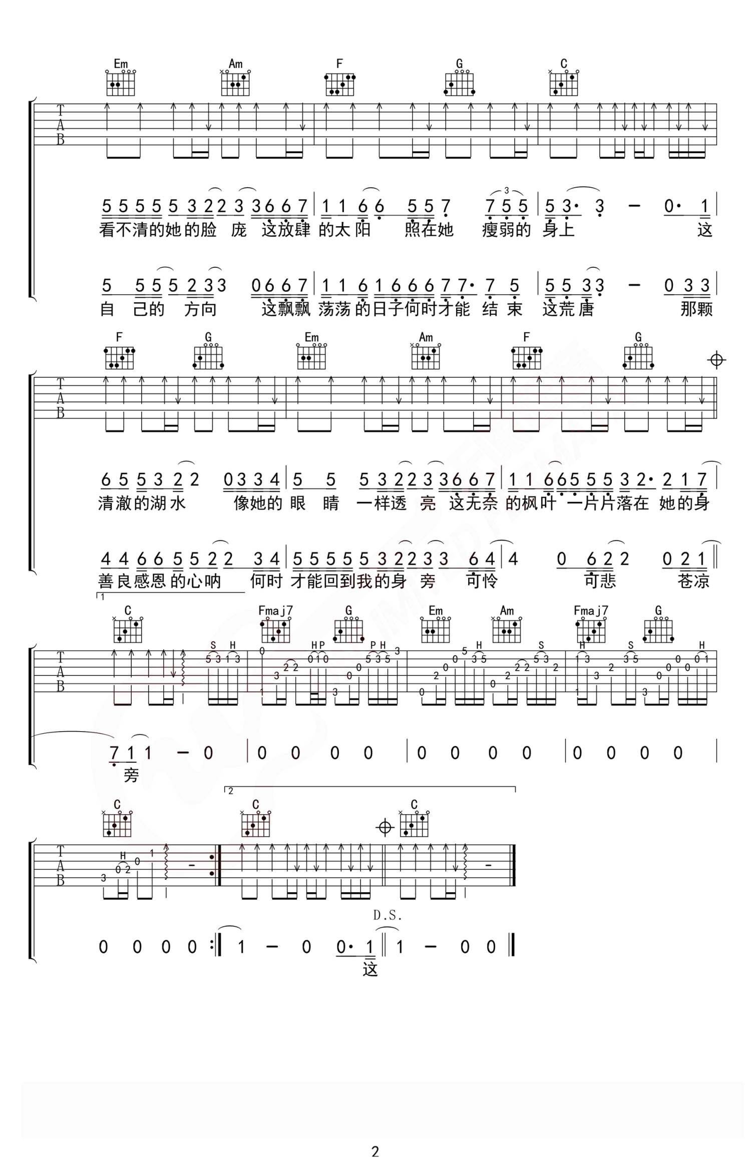 吉他弹唱C调来源:无限延音607 浏览2019-12-10 17:04发布图谱共2页