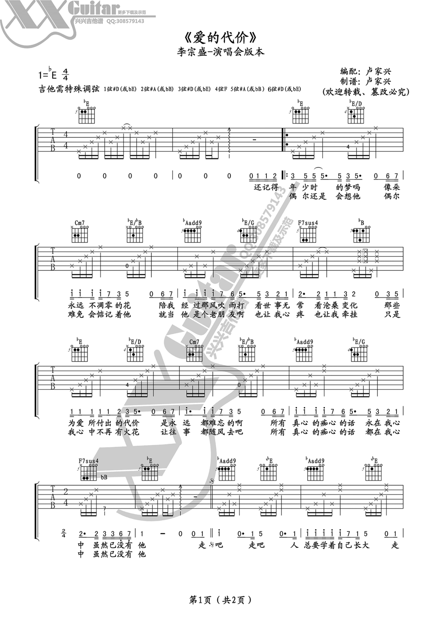 爱的代价吉他谱 - 李宗盛 - E调吉他弹唱谱