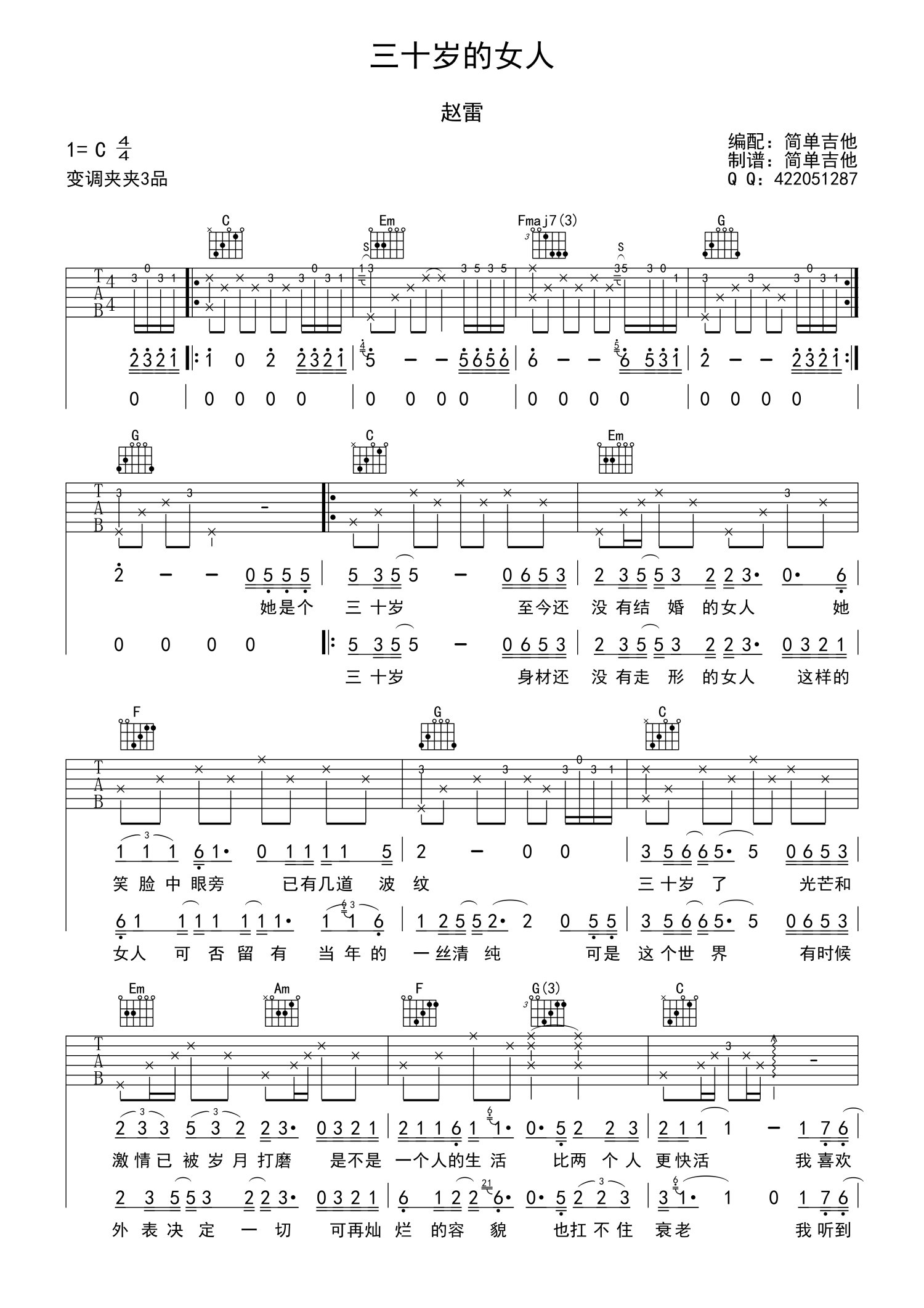 • 三十岁的女人吉他谱 - 赵雷/谭维维 - C调吉他弹唱谱第1张