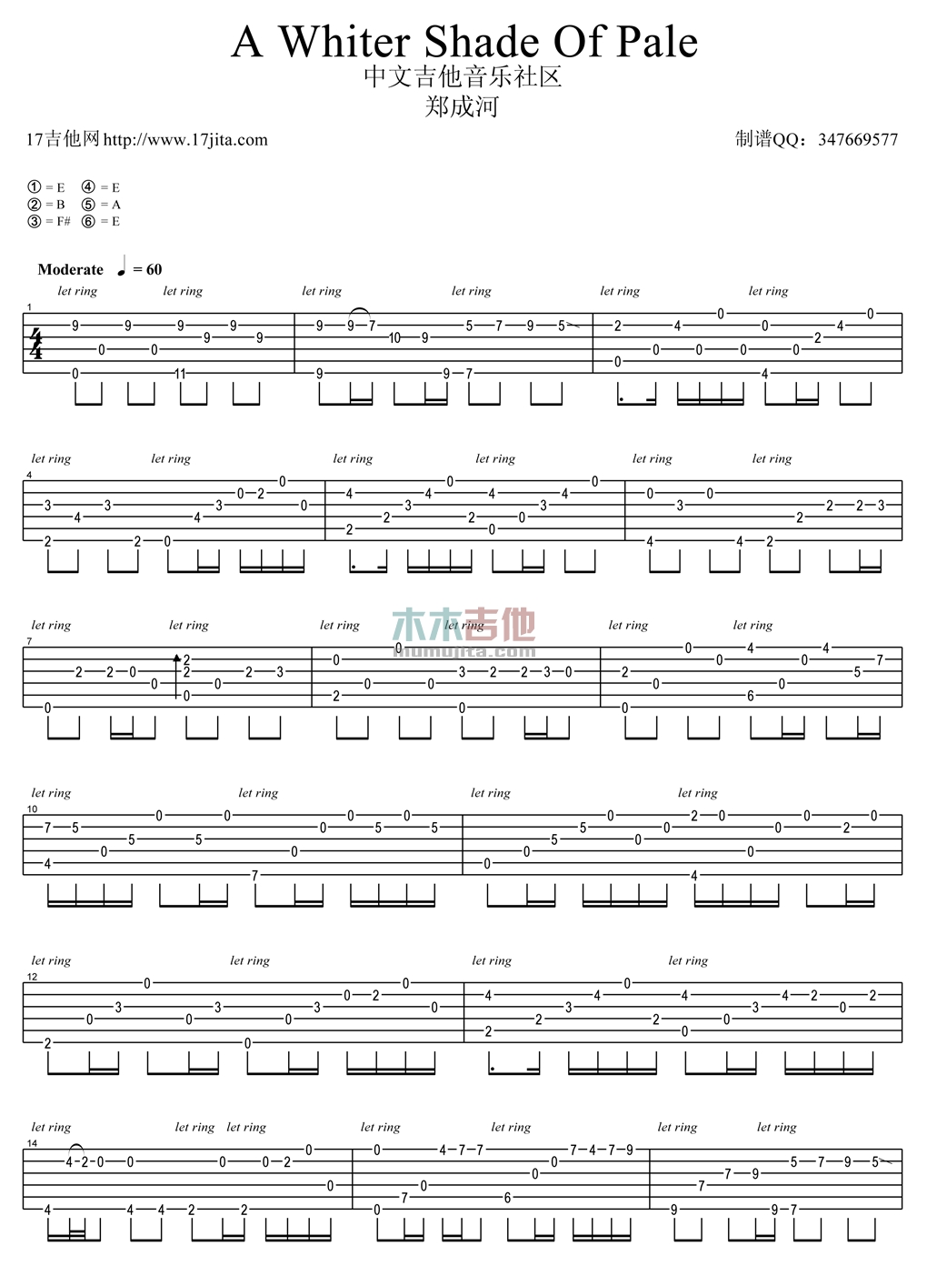 曲谱介绍: 郑成河《AWhiterShadeOfPale》吉他独奏谱,共有3张高清图谱。