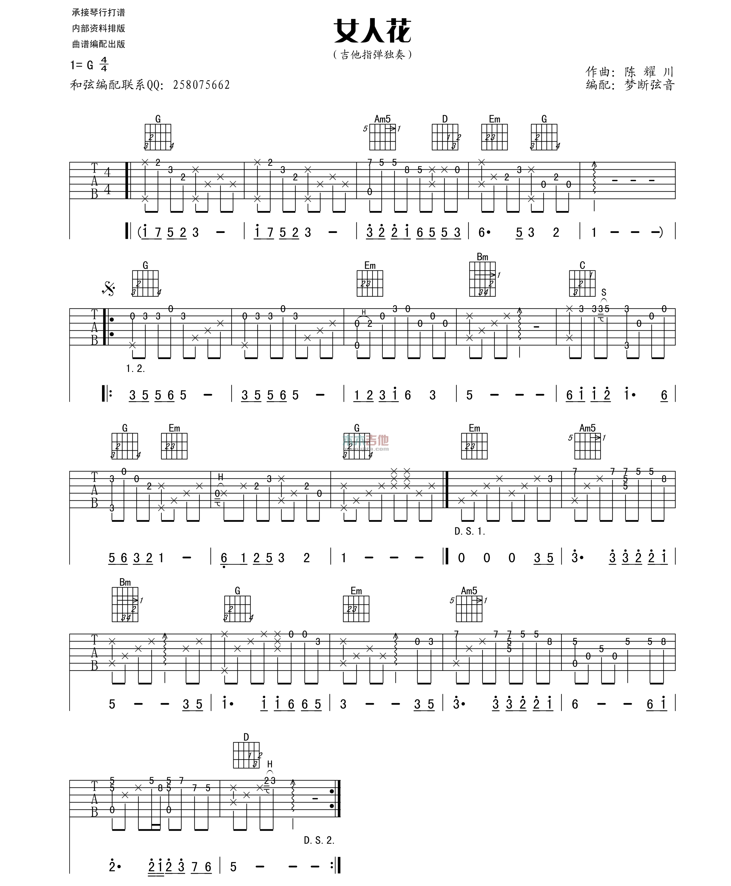当前位置:琴谱网>吉他独奏>女人花