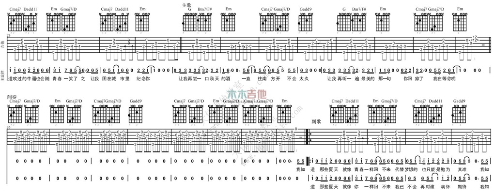 安和桥吉他谱 - 宋冬野 - G调吉他弹唱谱