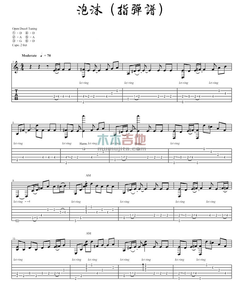 曲谱介绍: 邓紫棋《泡沫》吉他独奏谱,共有4张高清图谱。