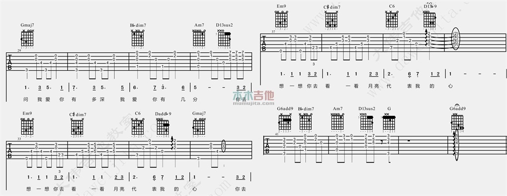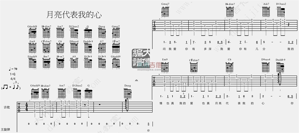 当前位置:琴谱网>吉他弹唱>月亮代表我的心 爵士版
