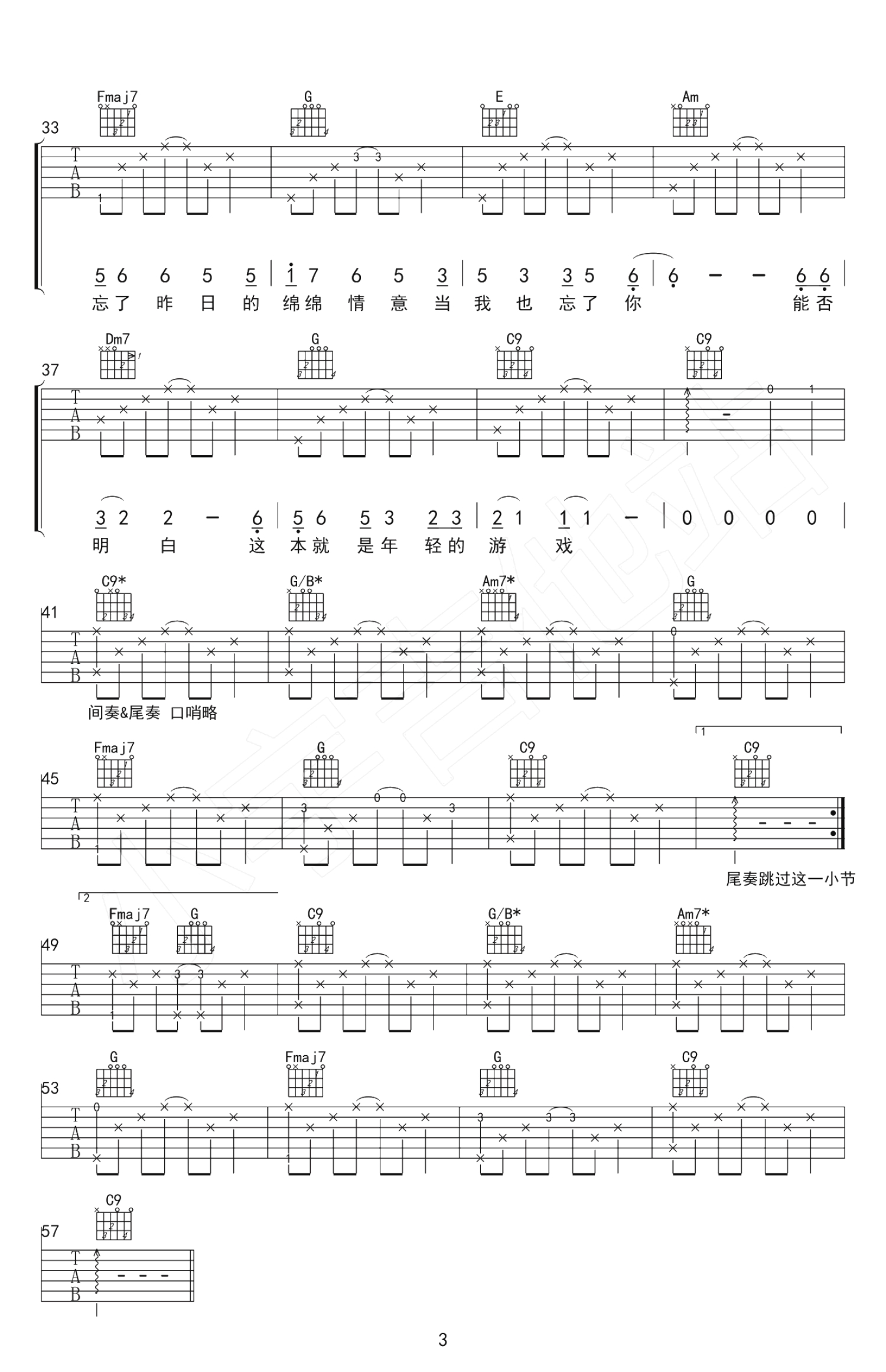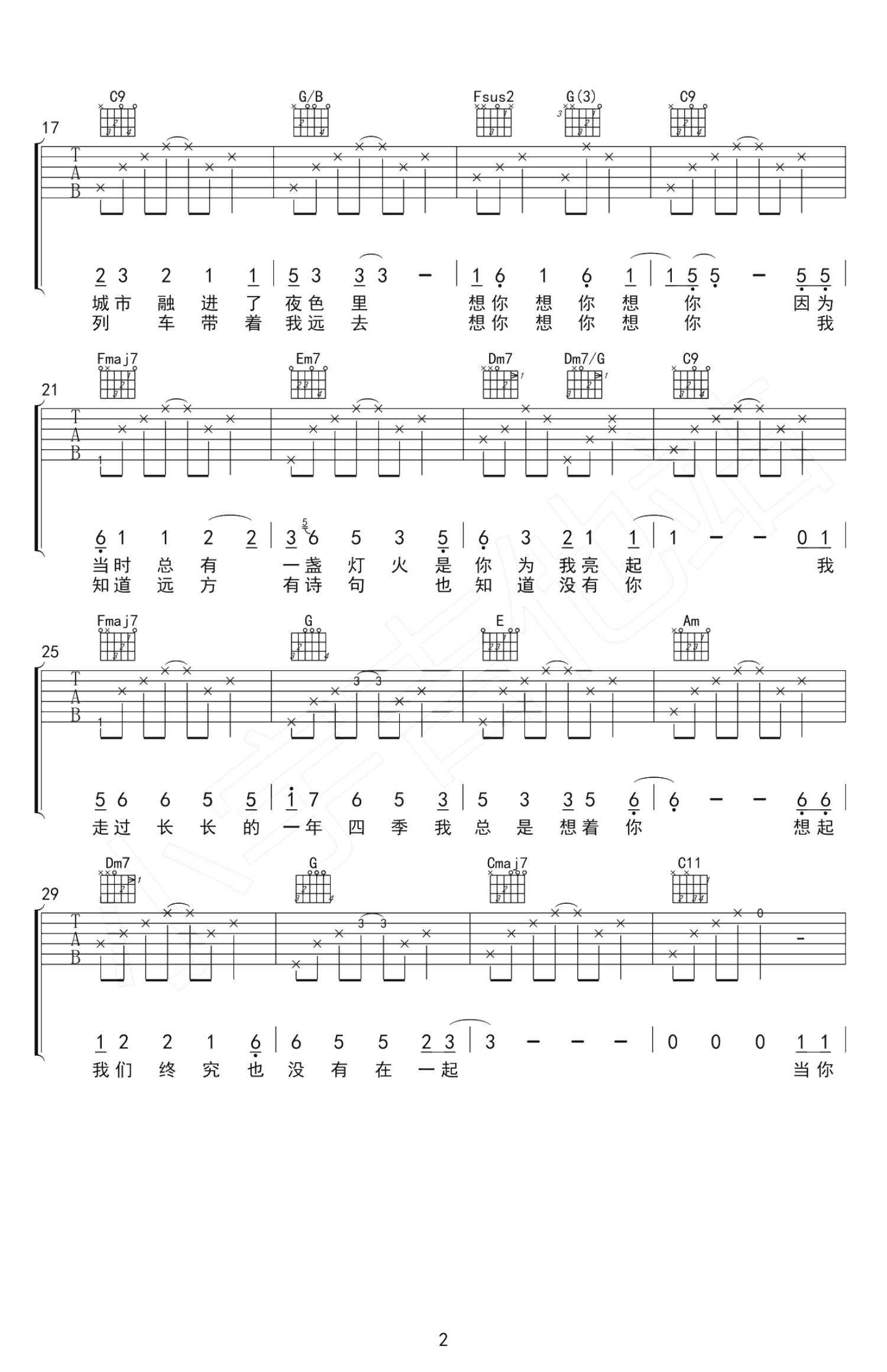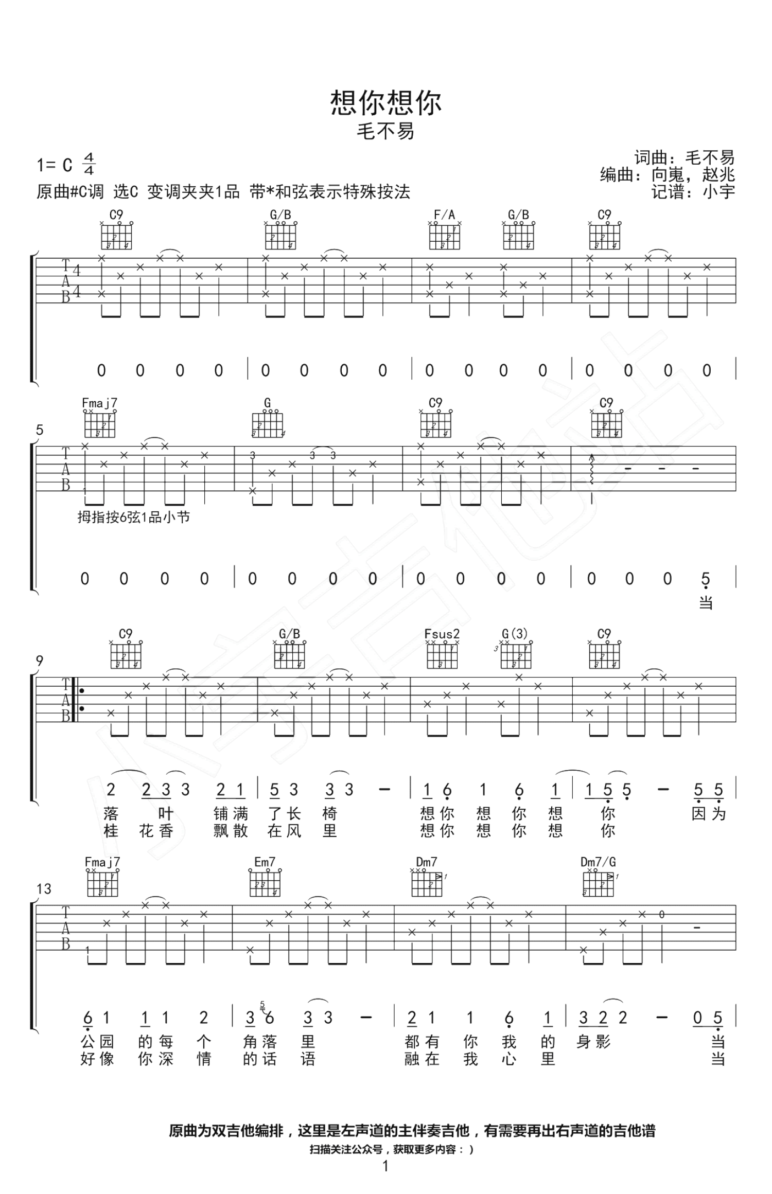 想你想你吉他谱 - 毛不易 - C调吉他弹唱谱