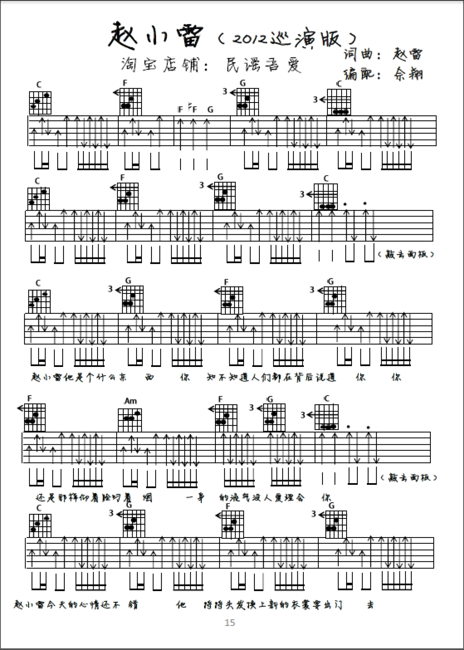 曲谱介绍: 赵雷《赵小雷》吉他谱_C调吉他弹唱谱