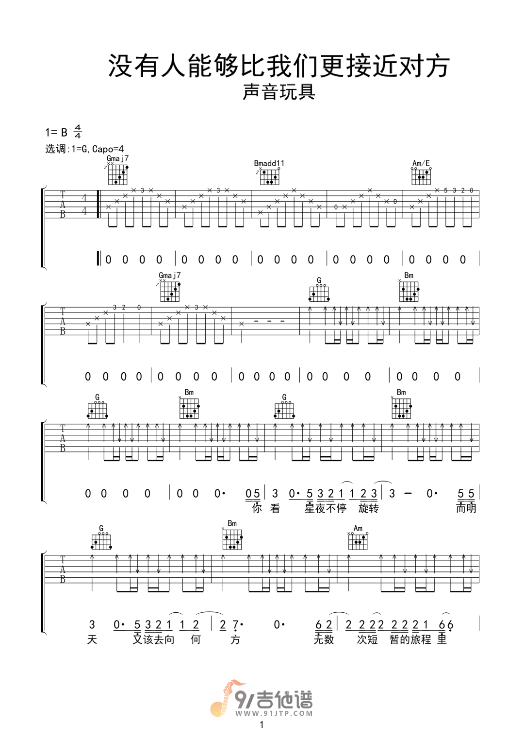 没有人能够比我们更接近对方吉他谱 - 声音玩具 - G调吉他弹唱谱 - 原版