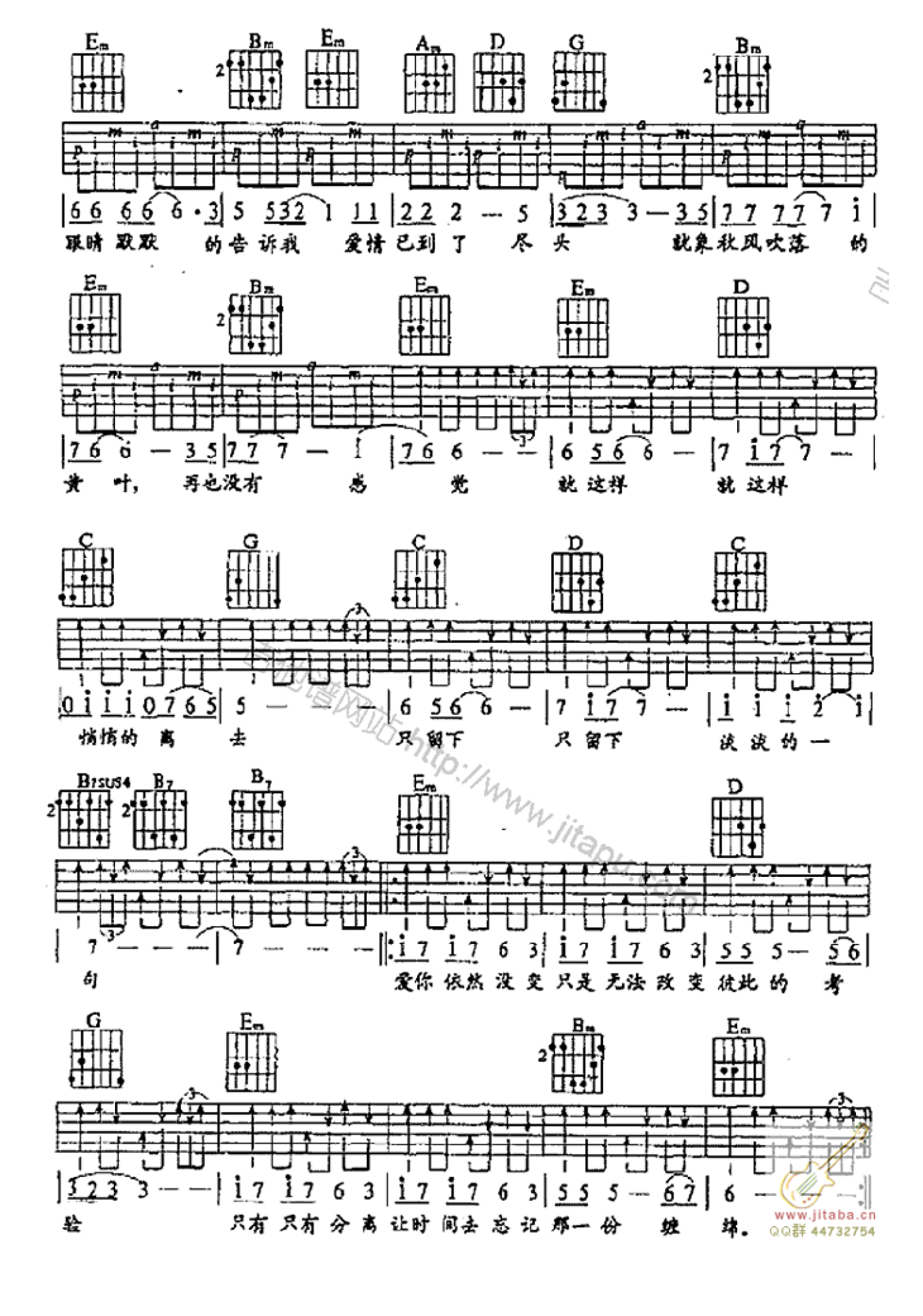 当前位置:琴谱网>吉他弹唱>只有分离