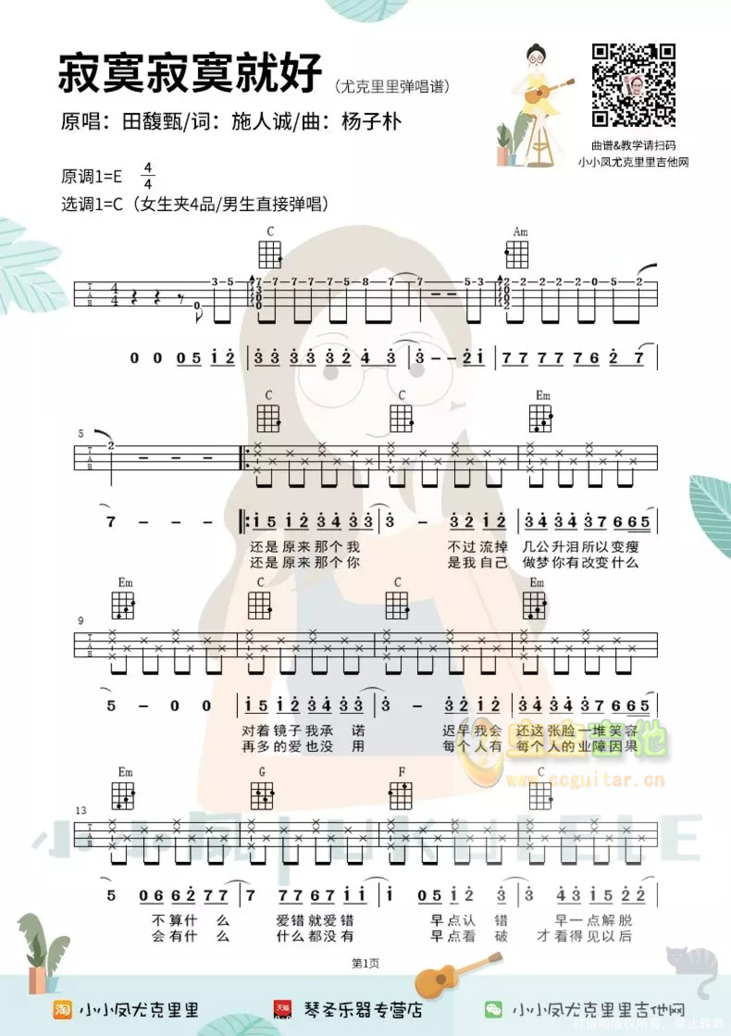 当前位置:琴谱网>尤克里里>寂寞寂寞就好