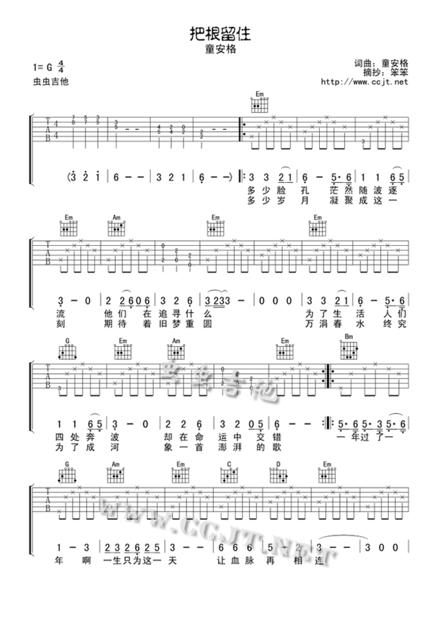 把根留住吉他谱 - 童安格 - G调吉他弹唱谱