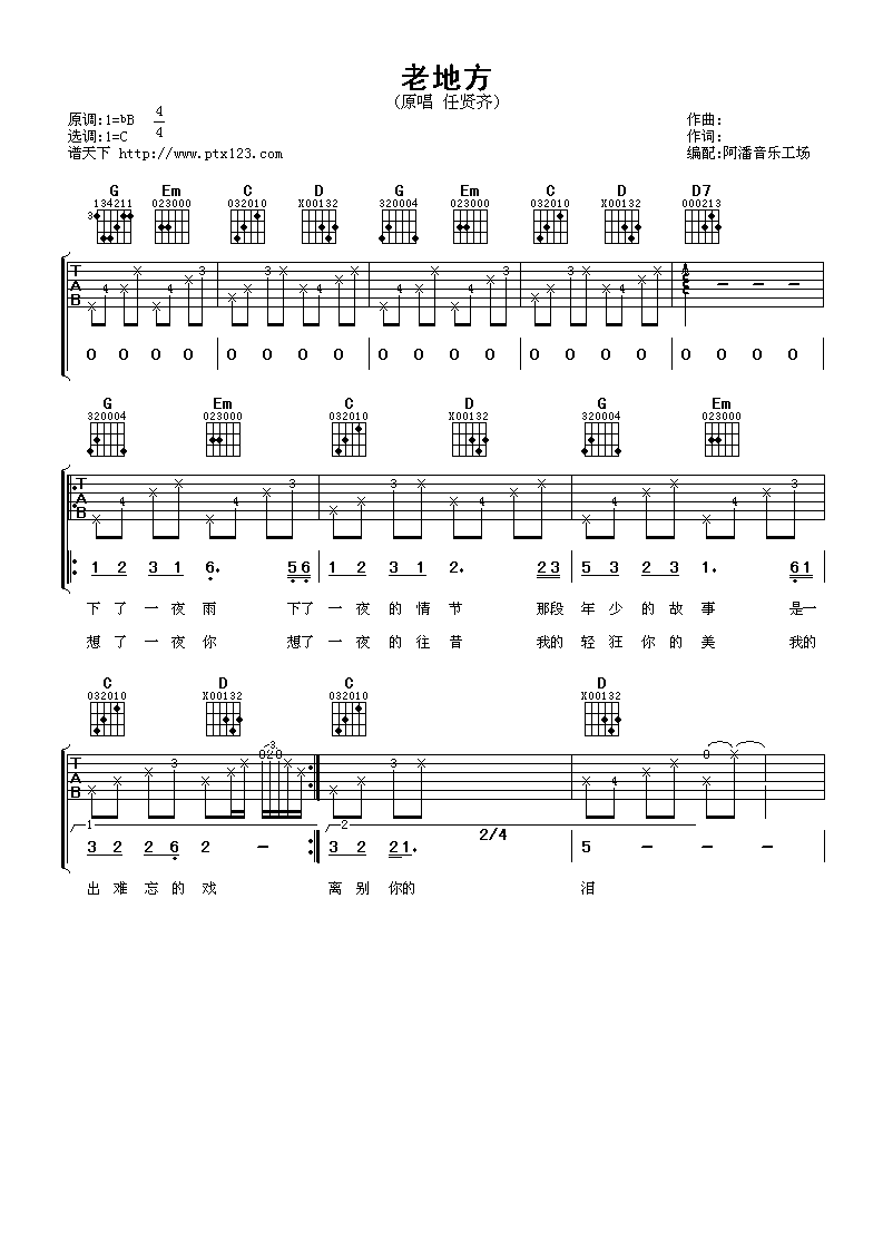老地方吉他谱 - 任贤齐 - G调吉他弹唱谱