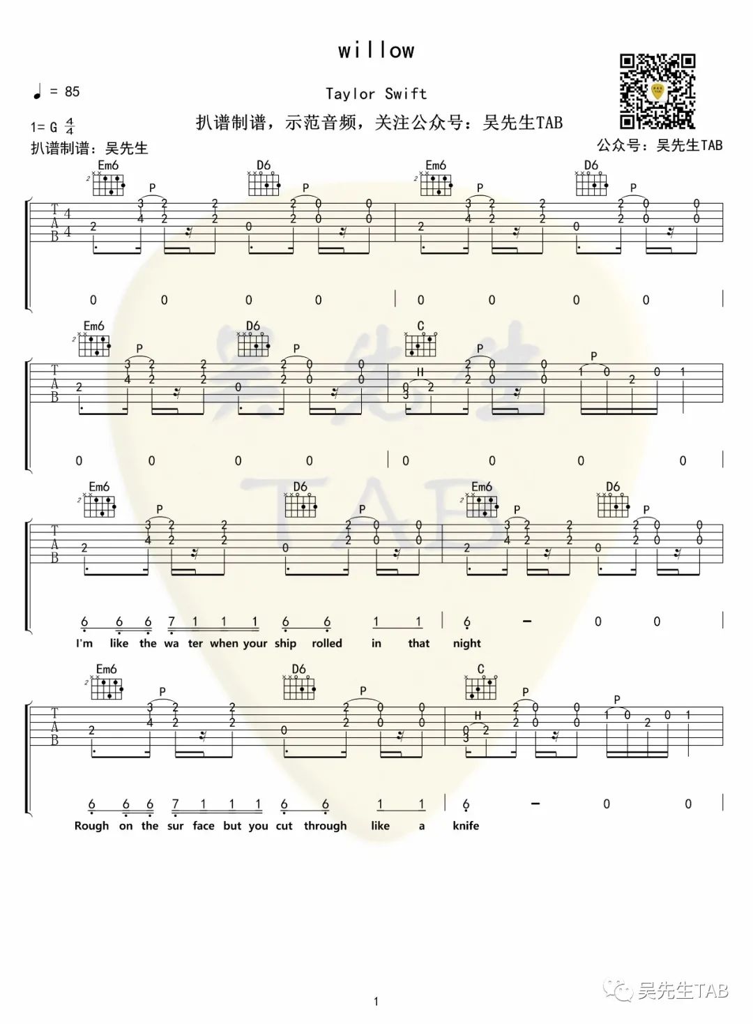 Willow吉他谱 - Taylor - G调吉他弹唱谱 - 原版