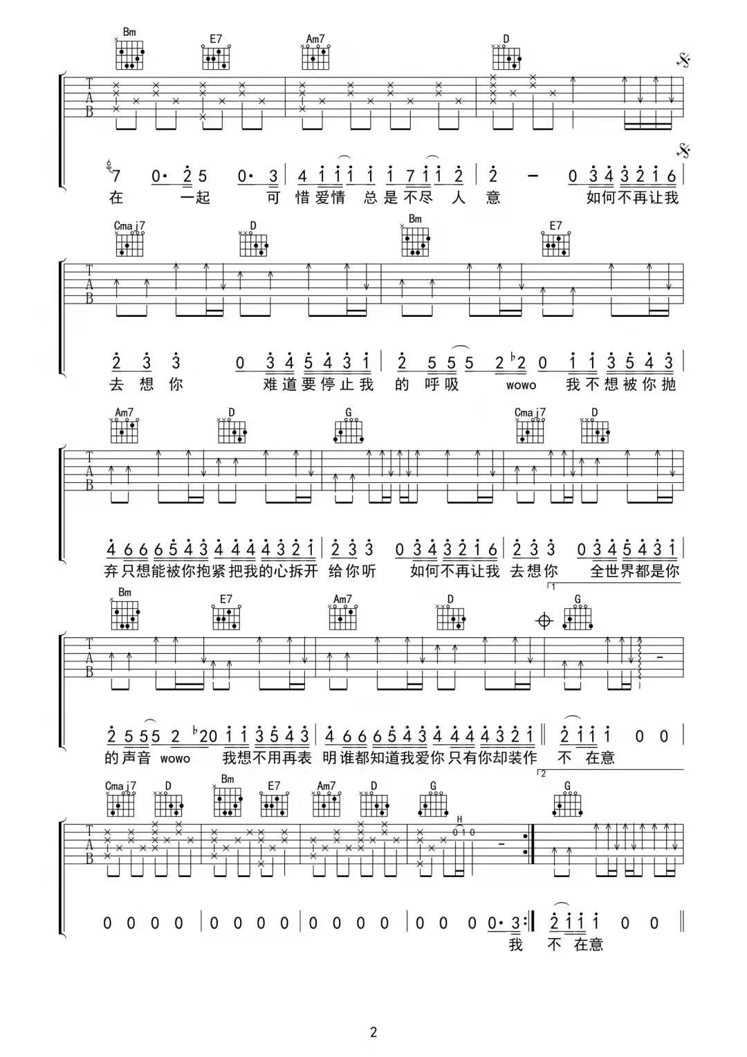 如何不再让我去想你吉他谱 - 井迪儿 - G调吉他弹唱谱