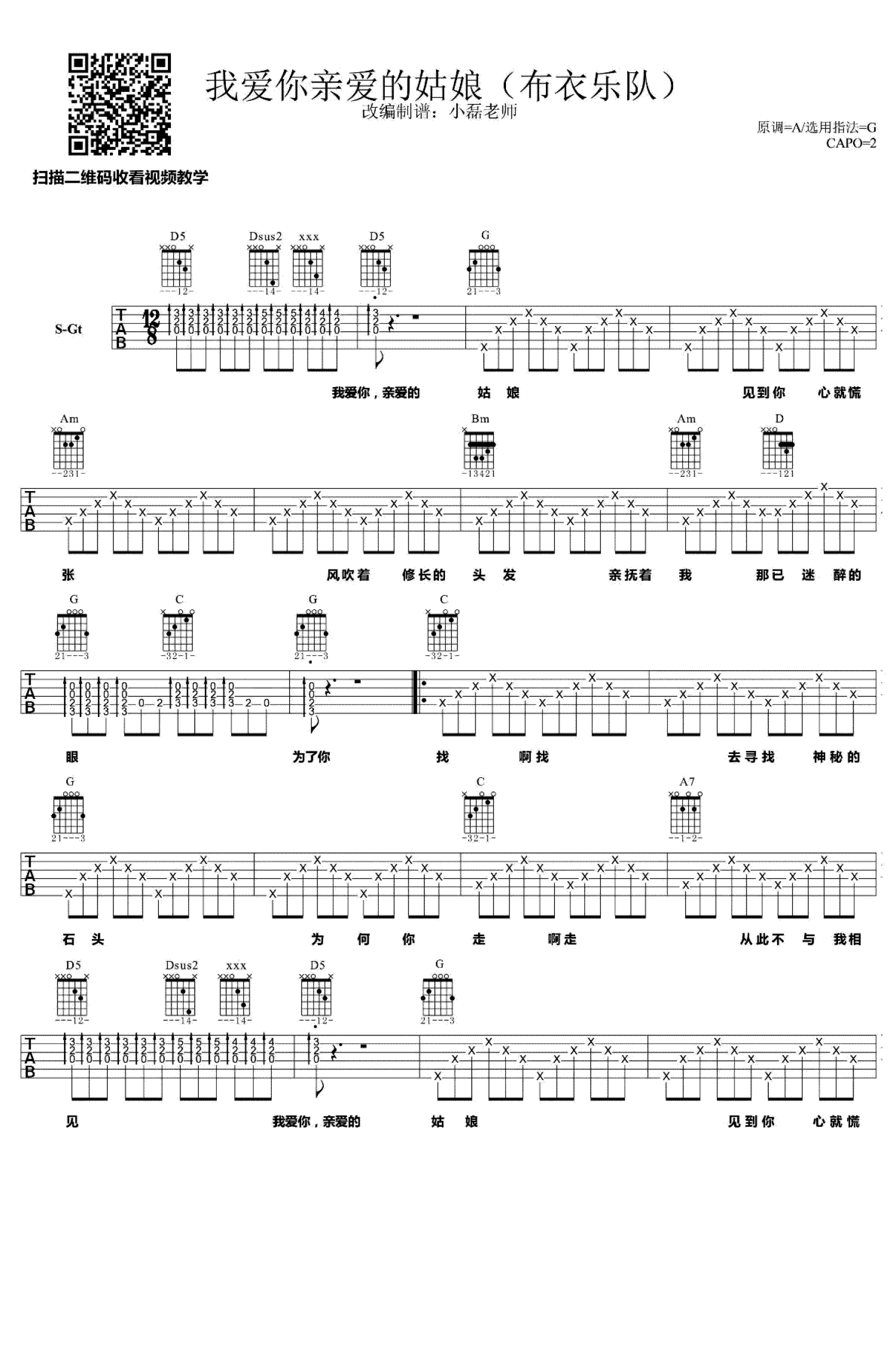 我爱你亲爱的姑娘吉他谱 - 布衣乐队 - G调吉他弹唱谱
