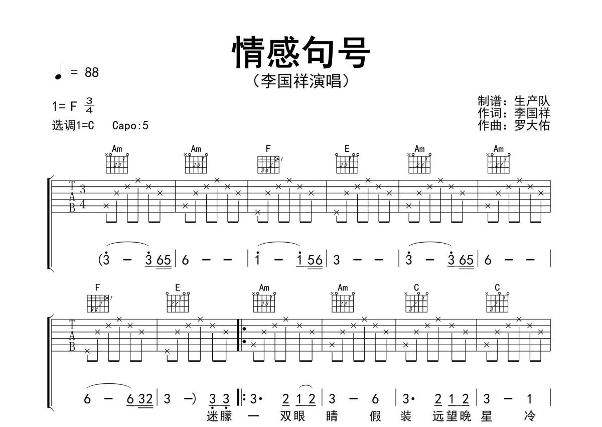 情感句号吉他谱 - 李国祥 - C调吉他弹唱谱 - 精编民谣版