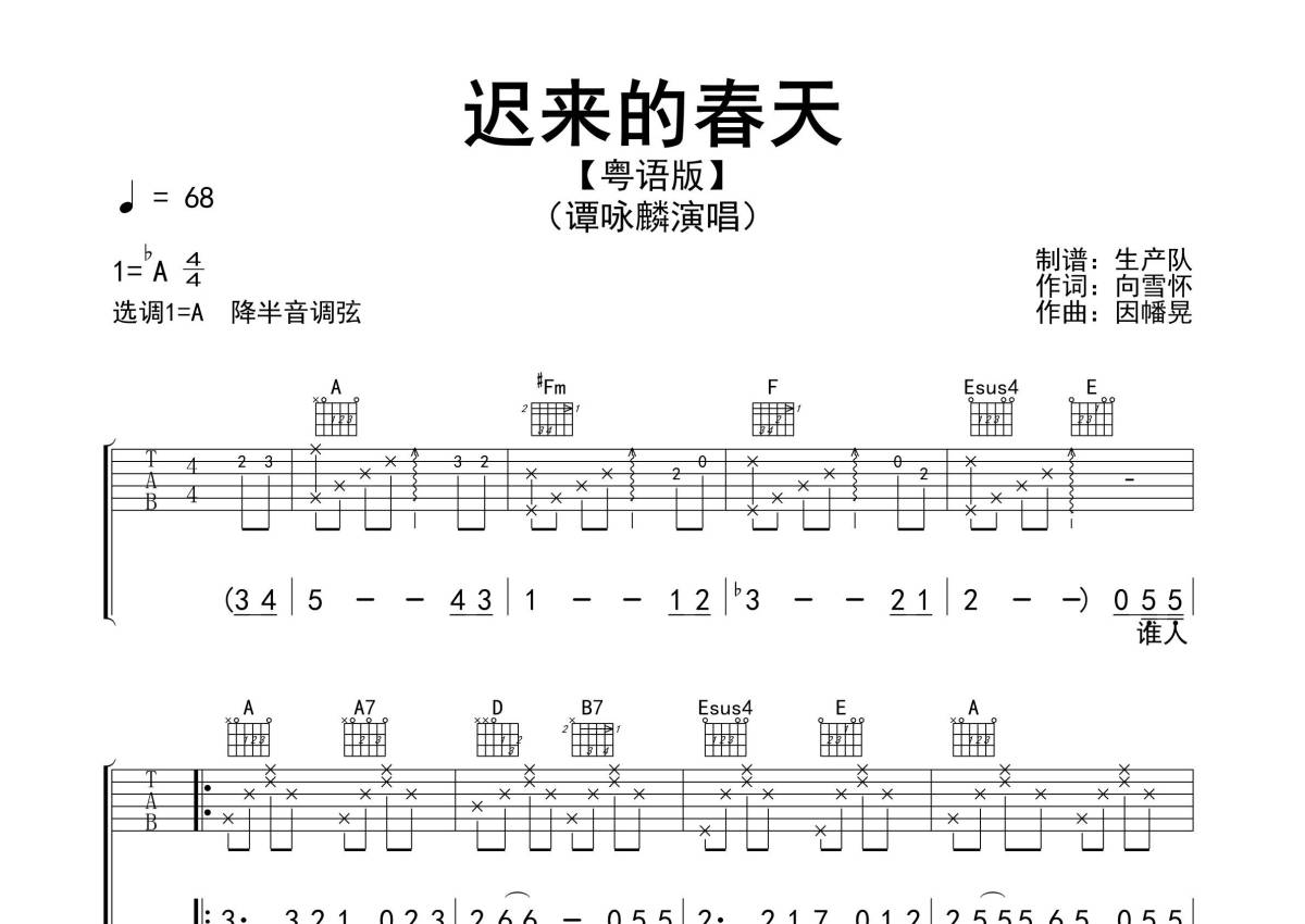 • 迟来的春天(粤语版)吉他谱 - 粤语版 - A调吉他弹唱谱 - 精编完美版第1张
