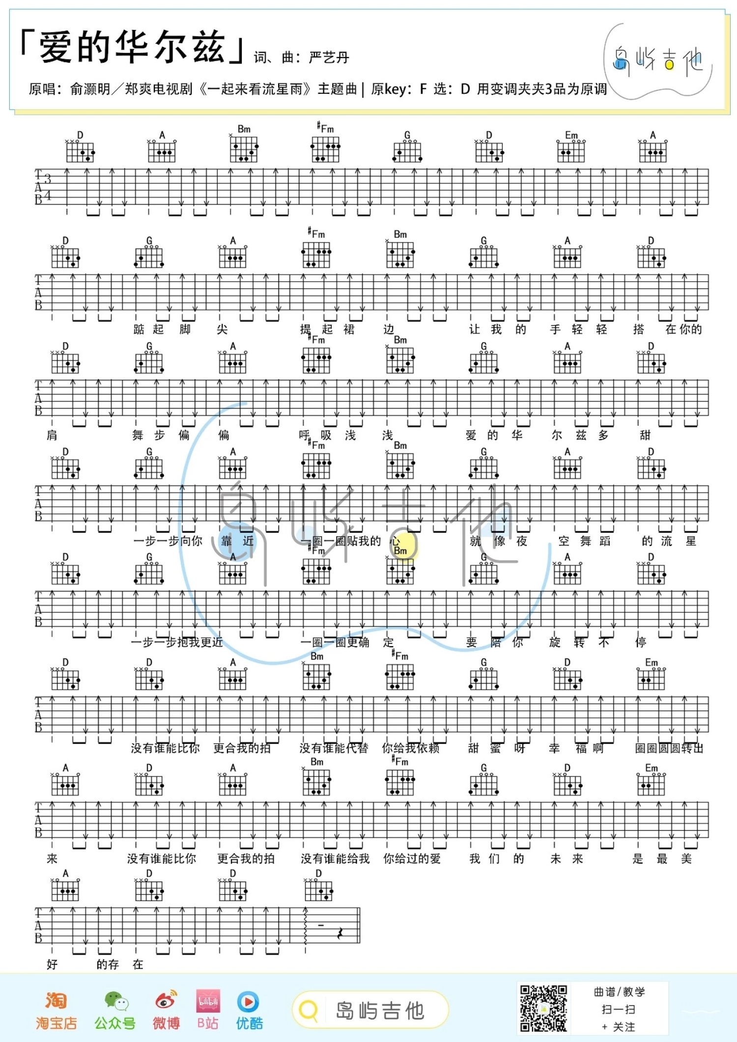 曲谱介绍: 俞灏明/郑爽《爱的华尔兹》吉他谱_D调吉他弹唱谱_和弦谱