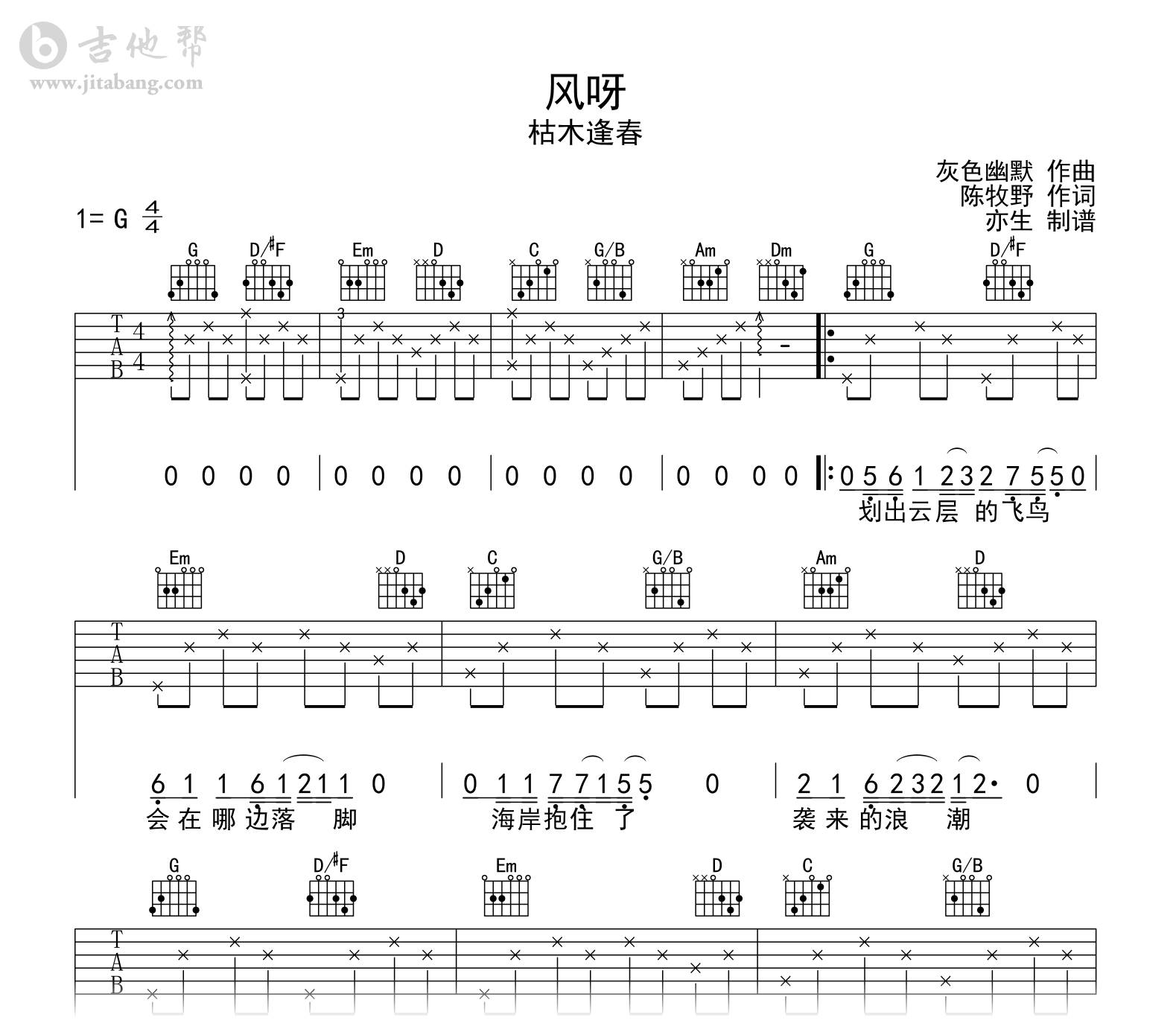 风呀吉他谱 - 枯木逢春 - G调吉他弹唱谱