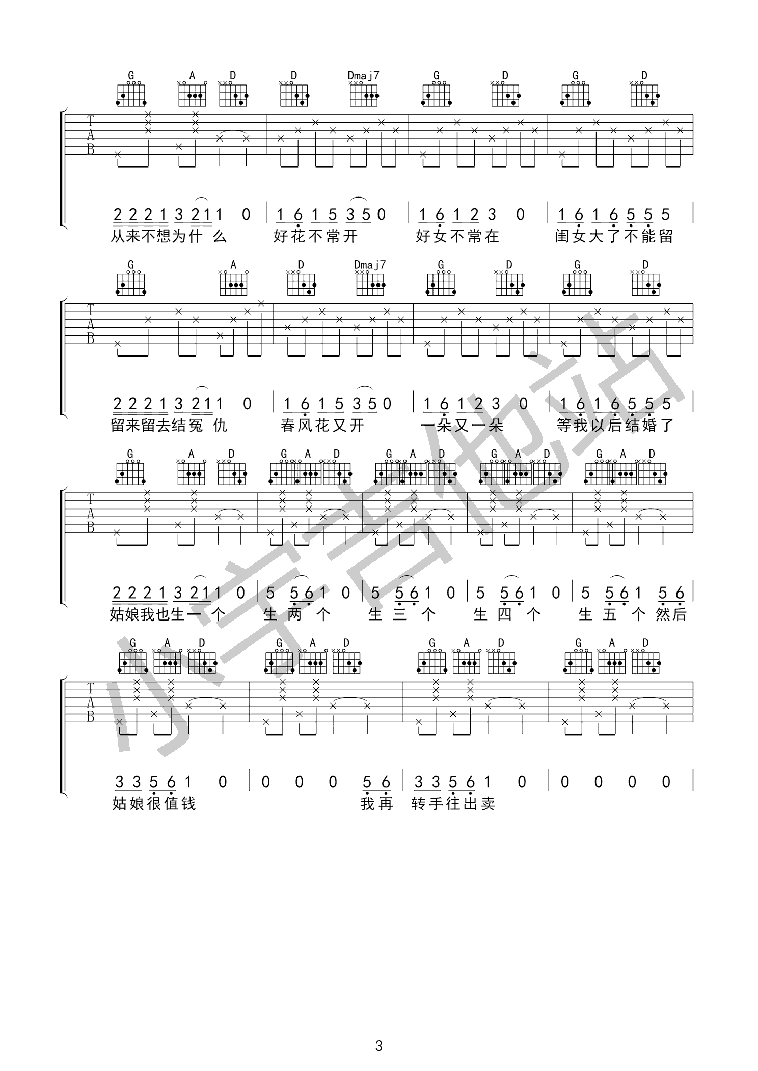 吉他弹唱D调来源:良好市民267 浏览2024-02-16 11:12发布图谱共3页