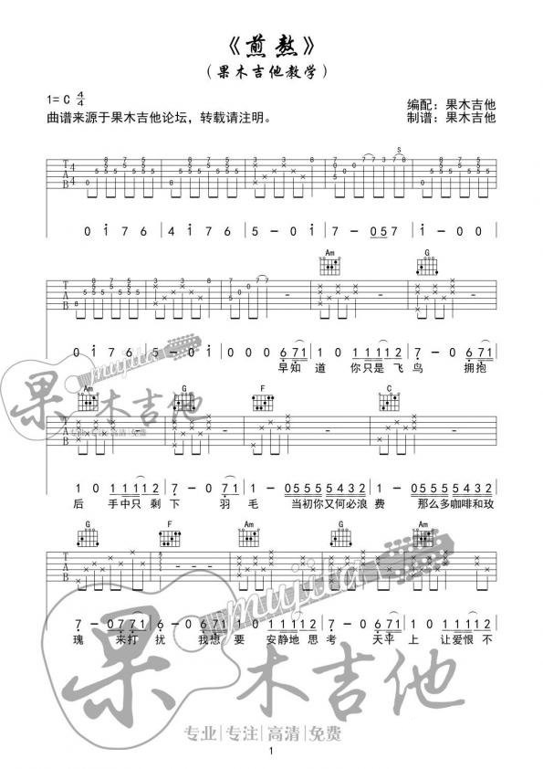 当前位置:琴谱网>吉他弹唱>煎熬