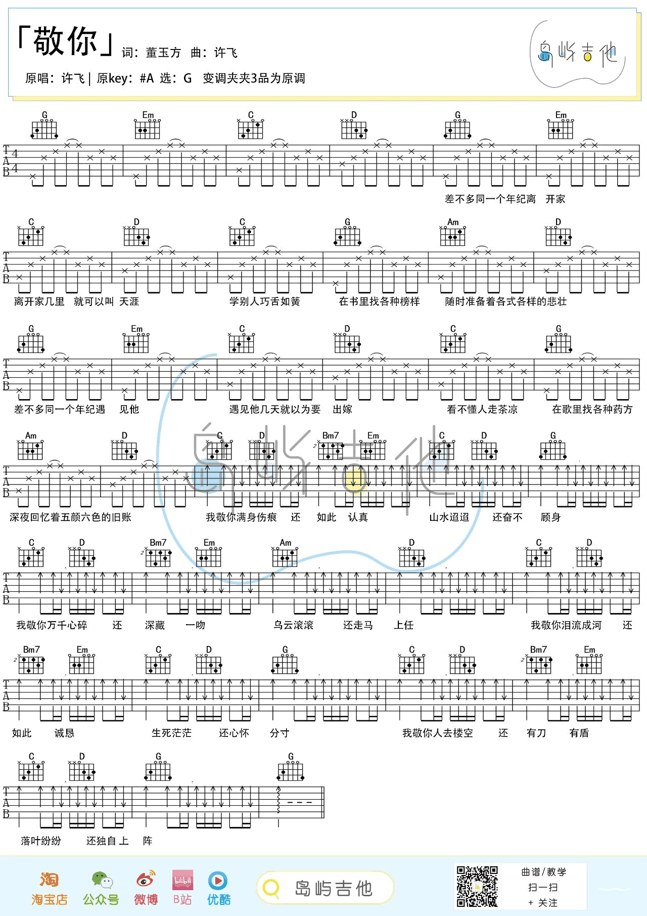 敬你吉他谱 - 许飞/万茜 - G调吉他弹唱谱