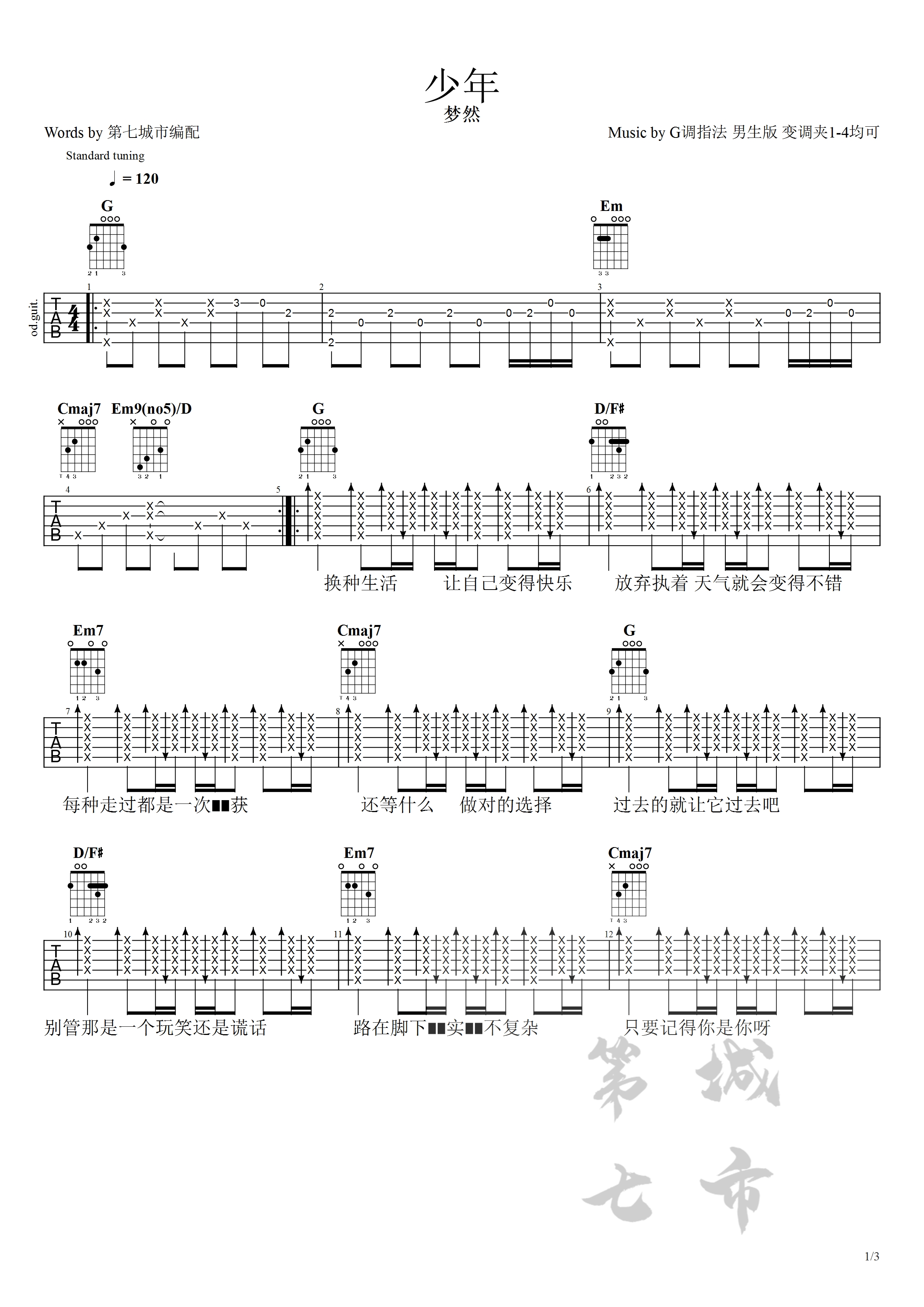 少年吉他谱 - 梦然 - G调吉他弹唱谱