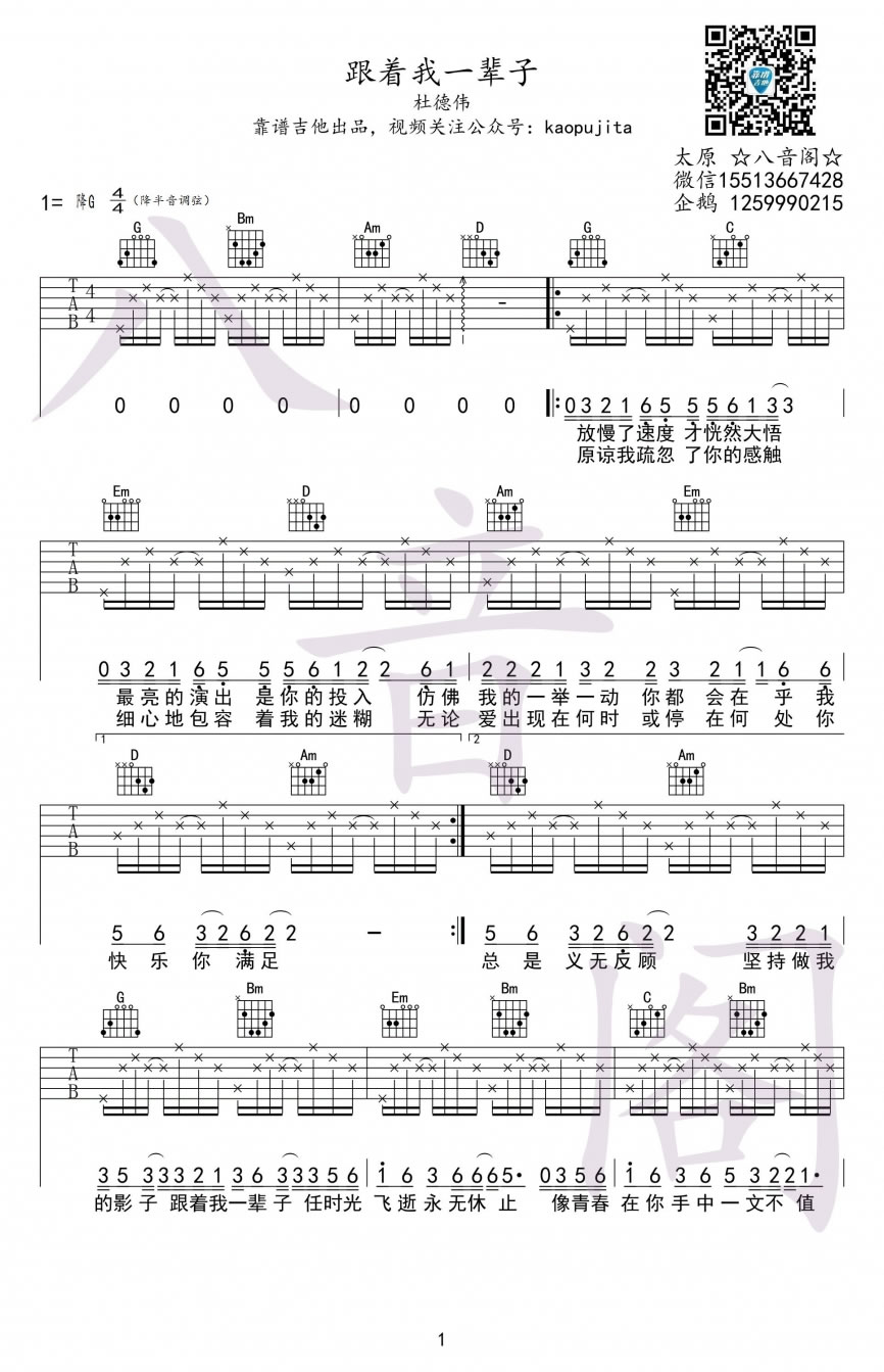 跟着我一辈子吉他谱 - 杜德伟 - G调吉他弹唱谱
